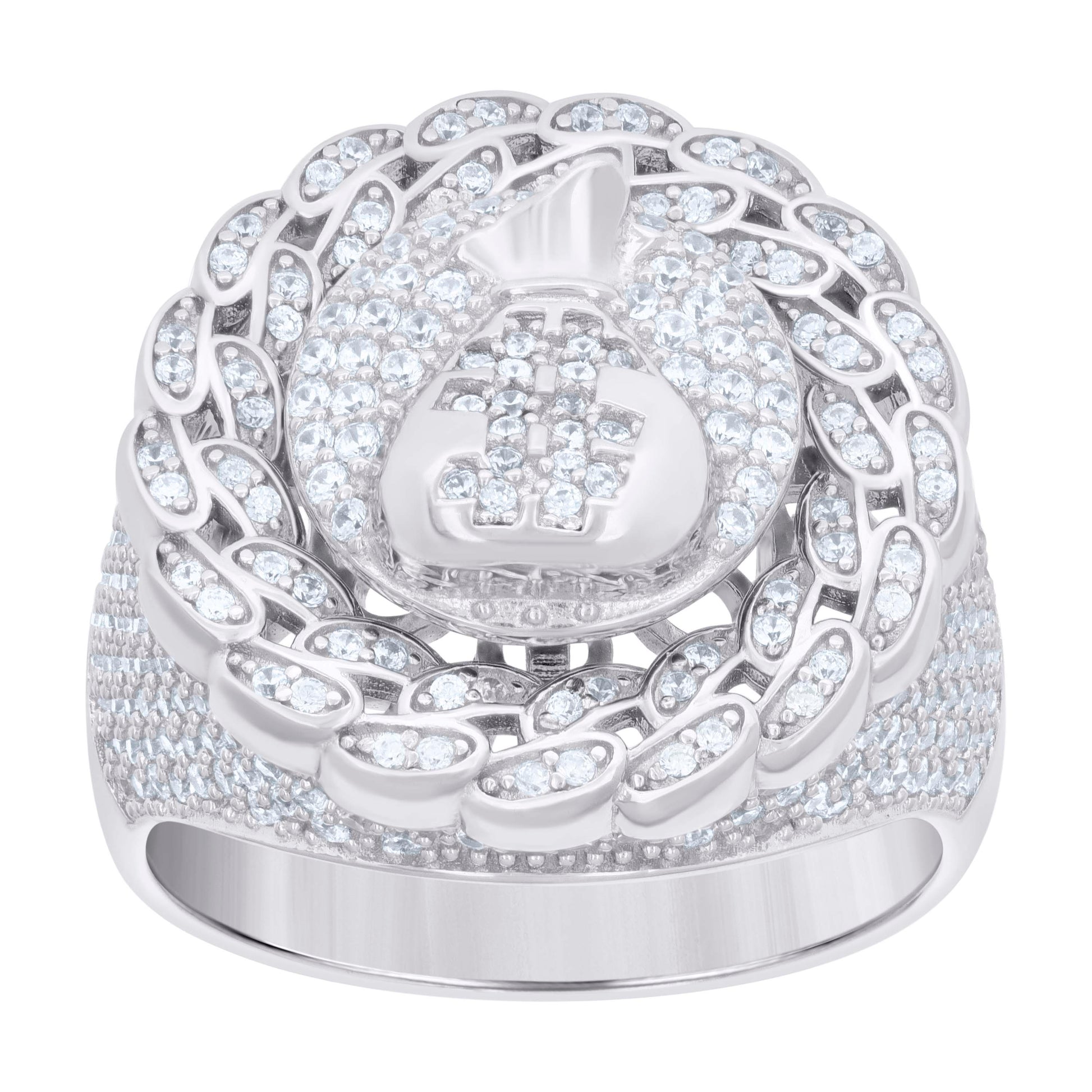 925 Sterling Silver Mens Cubic-Zirconia Moneybag Currency Ring Size 9