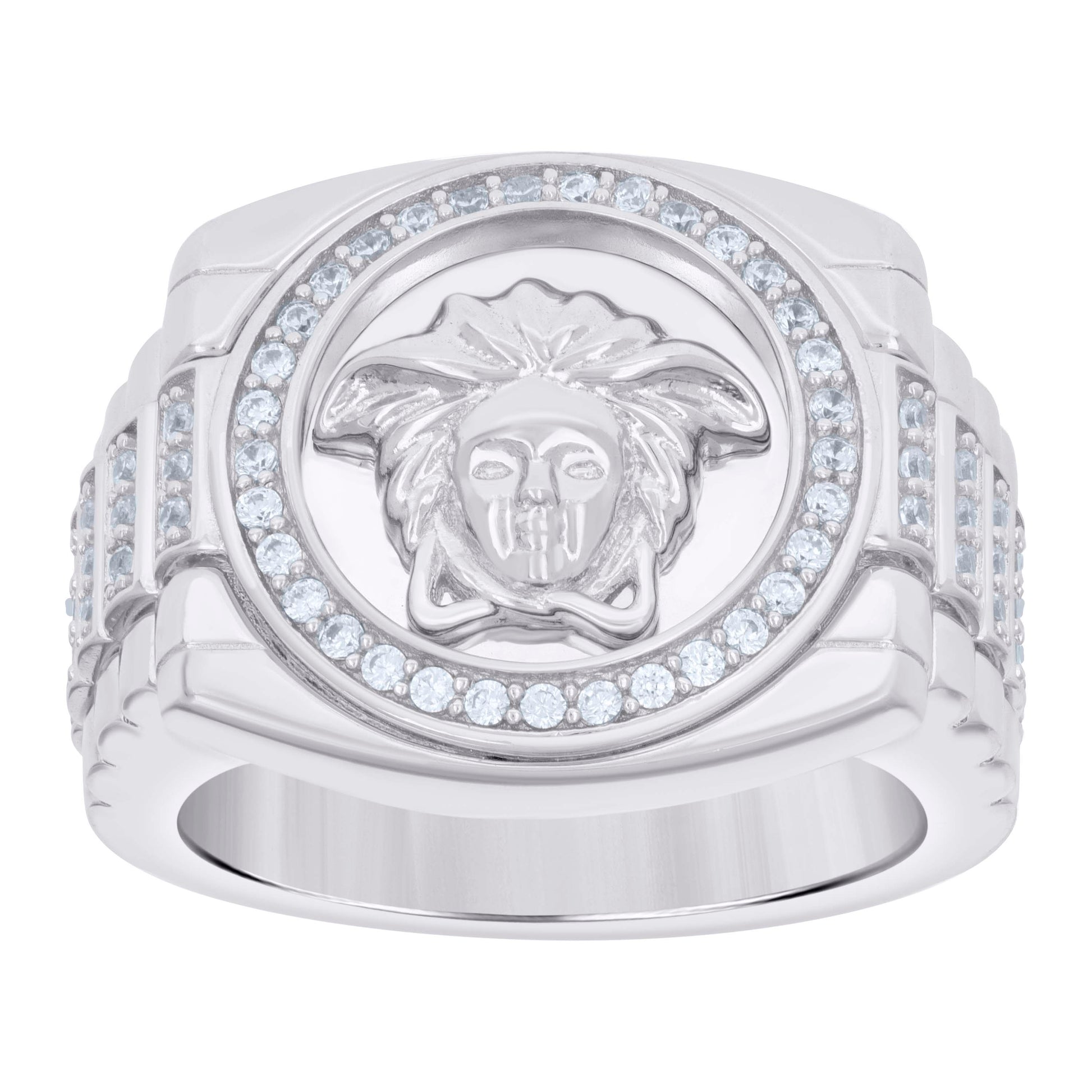 925 Sterling Silver Mens Cubic-Zirconia Medusa Egyptian Fashion Ring Size 9
