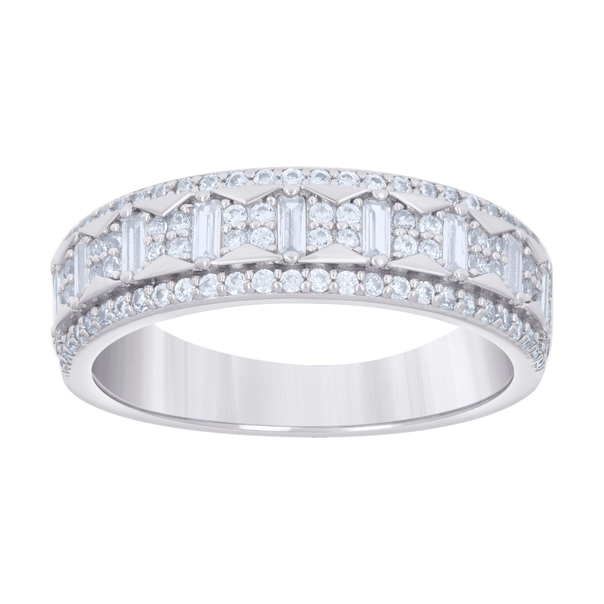 925 Sterling Silver Mens Baguette Round Cubic-Zirconia Fashion Wedding Band Ring Size 5