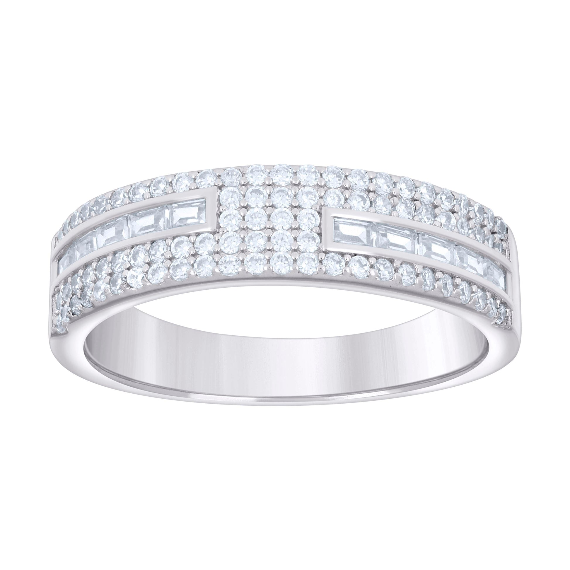 925 Sterling Silver Mens Baguette Round Cubic-Zirconia Fashion Wedding Band Ring Size 5