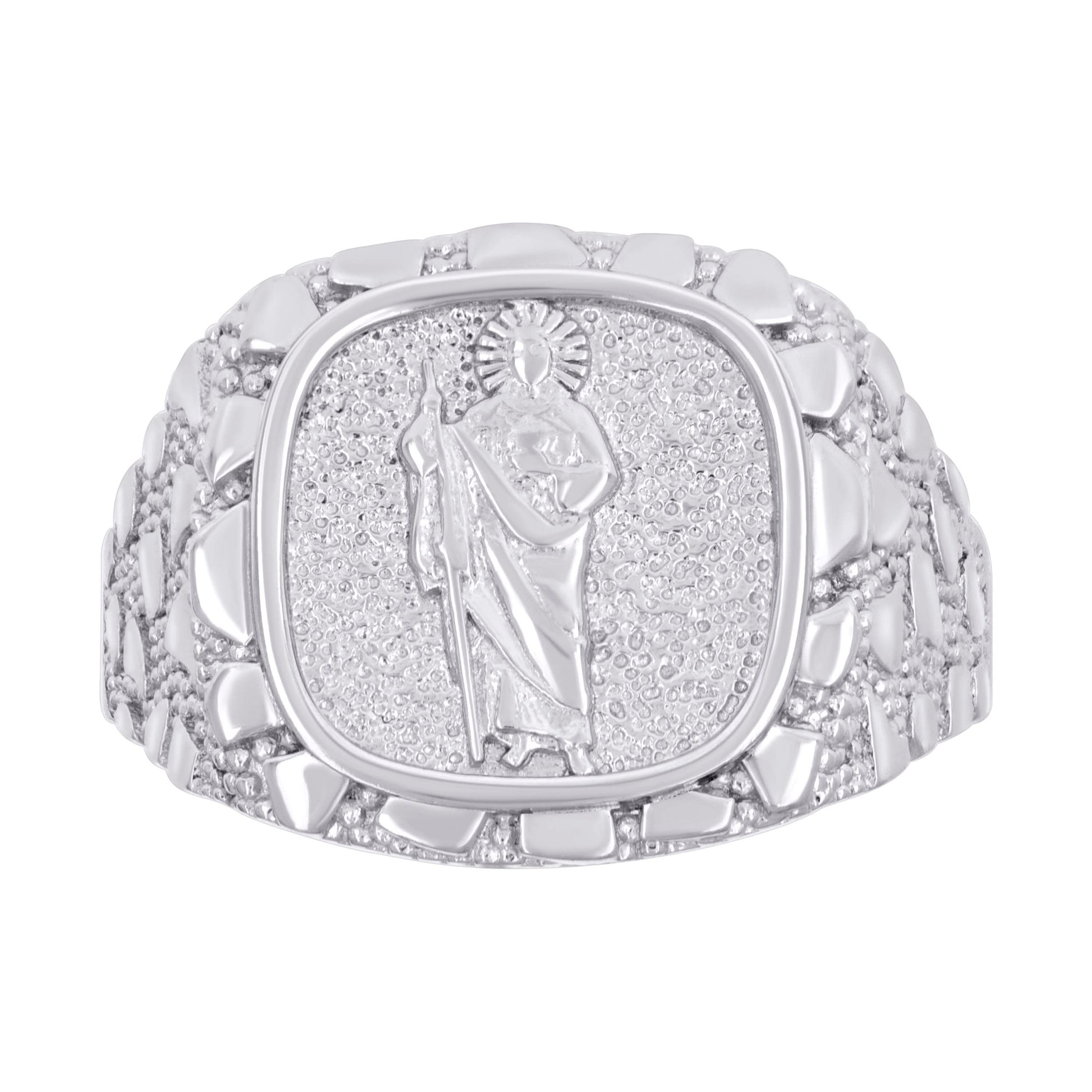 925 Sterling Silver Mens Nugget St. Jude Religious Ring Size 9