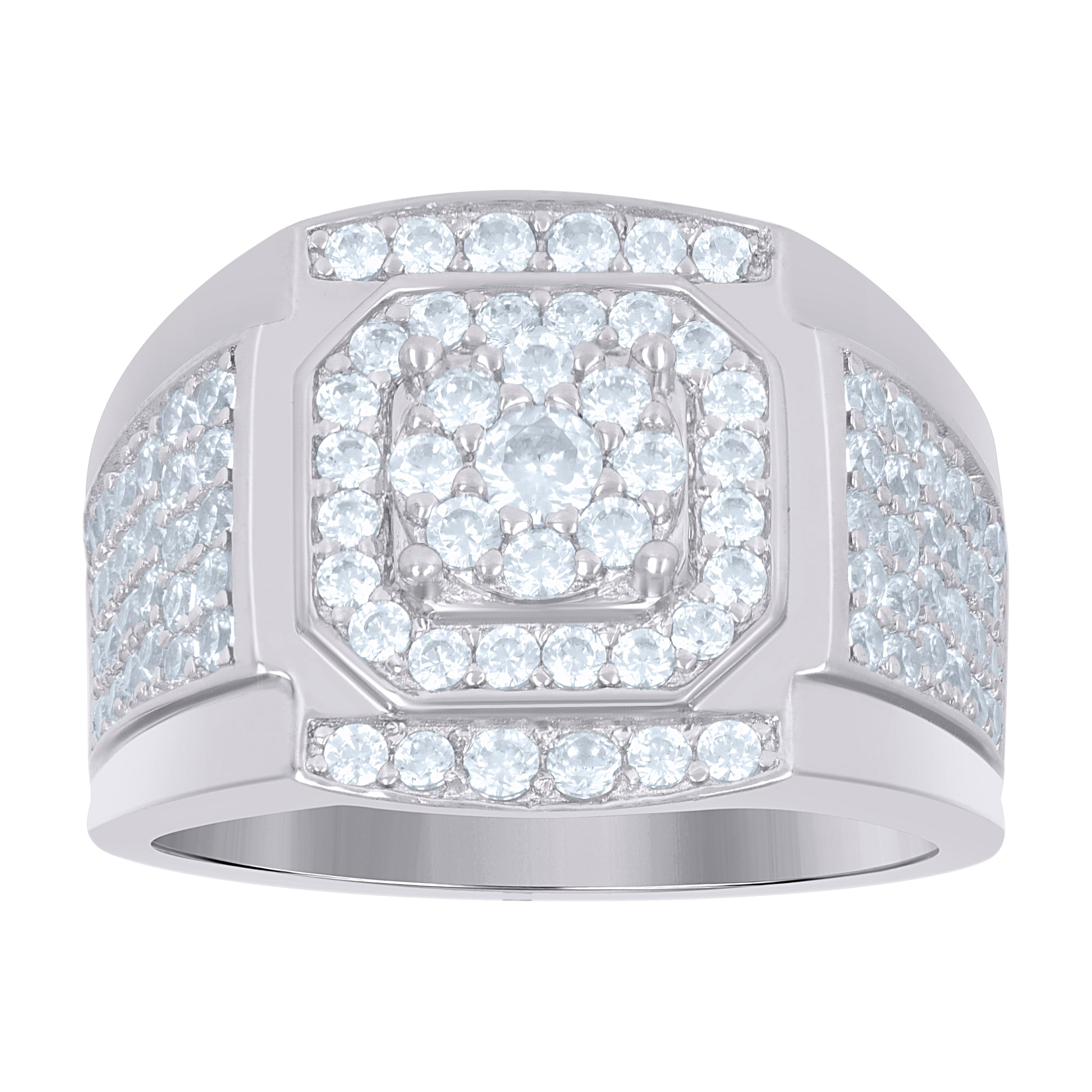 925 Sterling Silver Mens Cubic Zirconia Square Head Presidential Ring Size 7