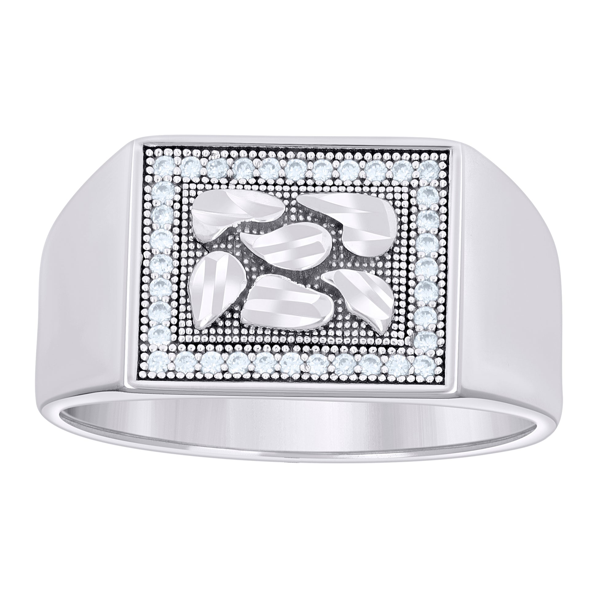 925 Sterling Silver Mens Cubic-Zirconia Nugget Square Head Fashion Ring Size 8