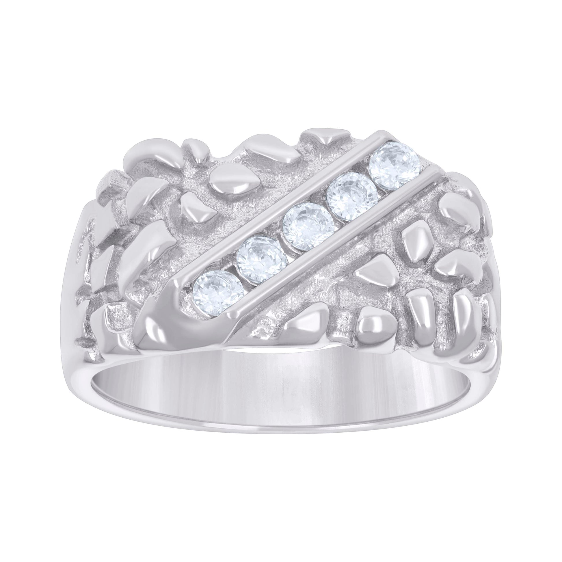 925 Sterling Silver Mens Cubic-Zirconia Nugget Fashion Ring Size 7