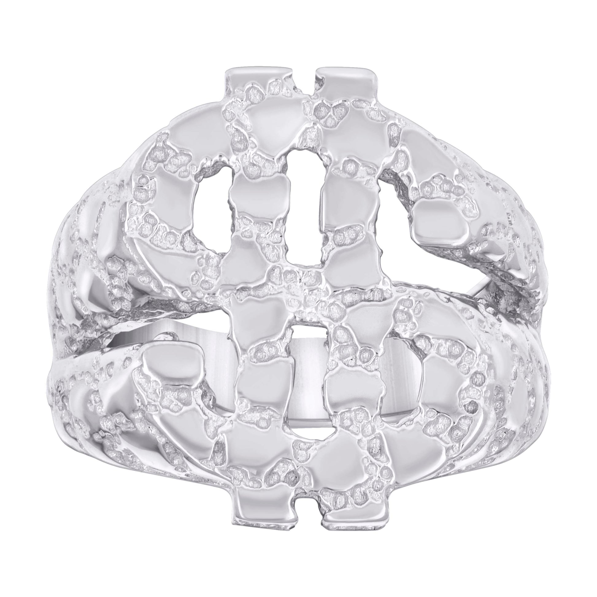 925 Sterling Silver Mens Nugget Dollar Sign Currency Ring Size 8