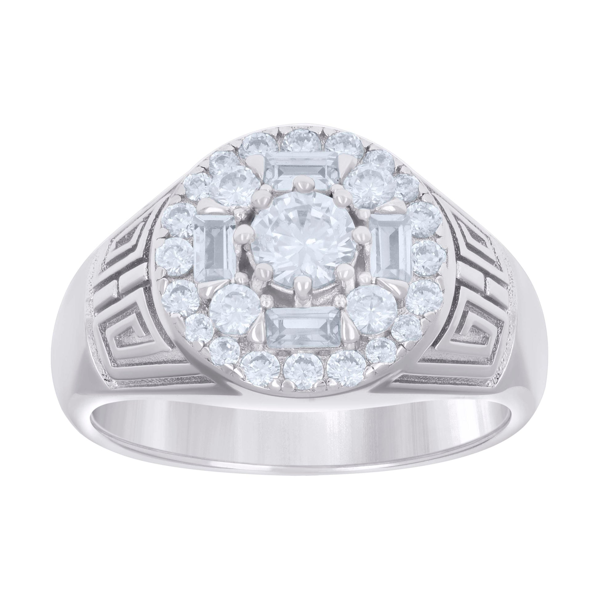 925 Sterling Silver Mens Baguette Round Cubic-Zirconia Fashion Ring Size 8