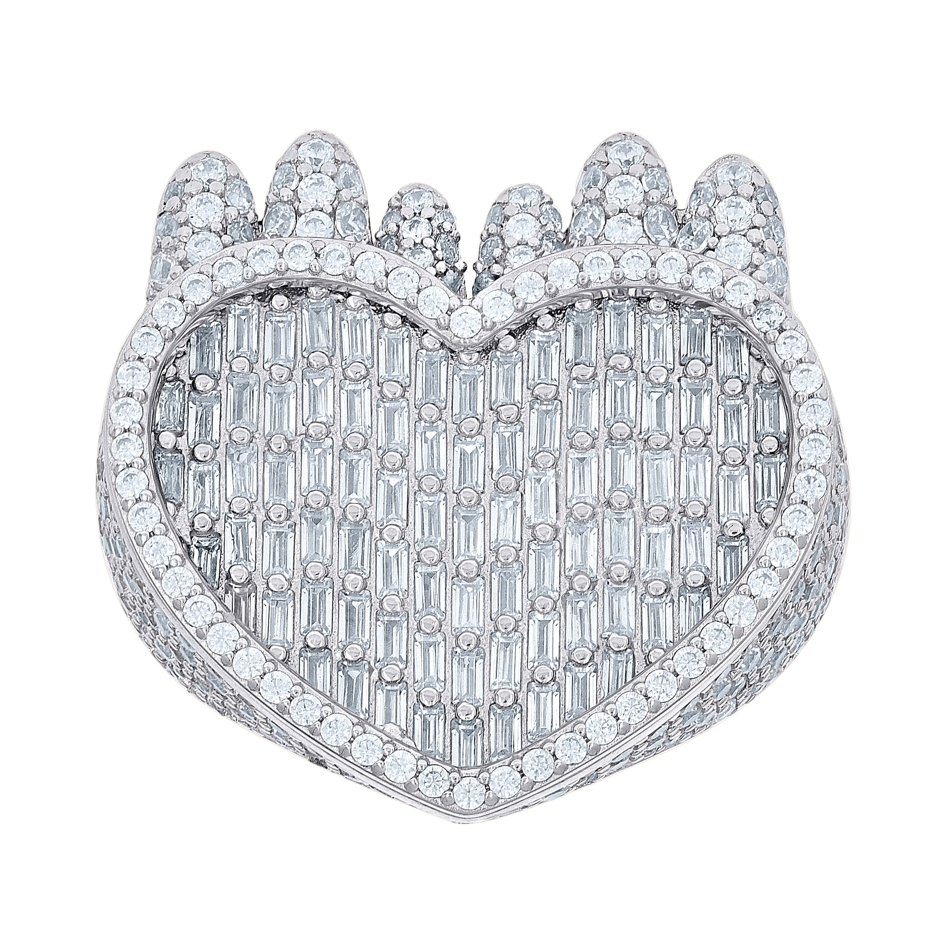 925 Sterling Silver Mens Baguette Round Cubic-Zirconia Dripping Heart Ring Size 10