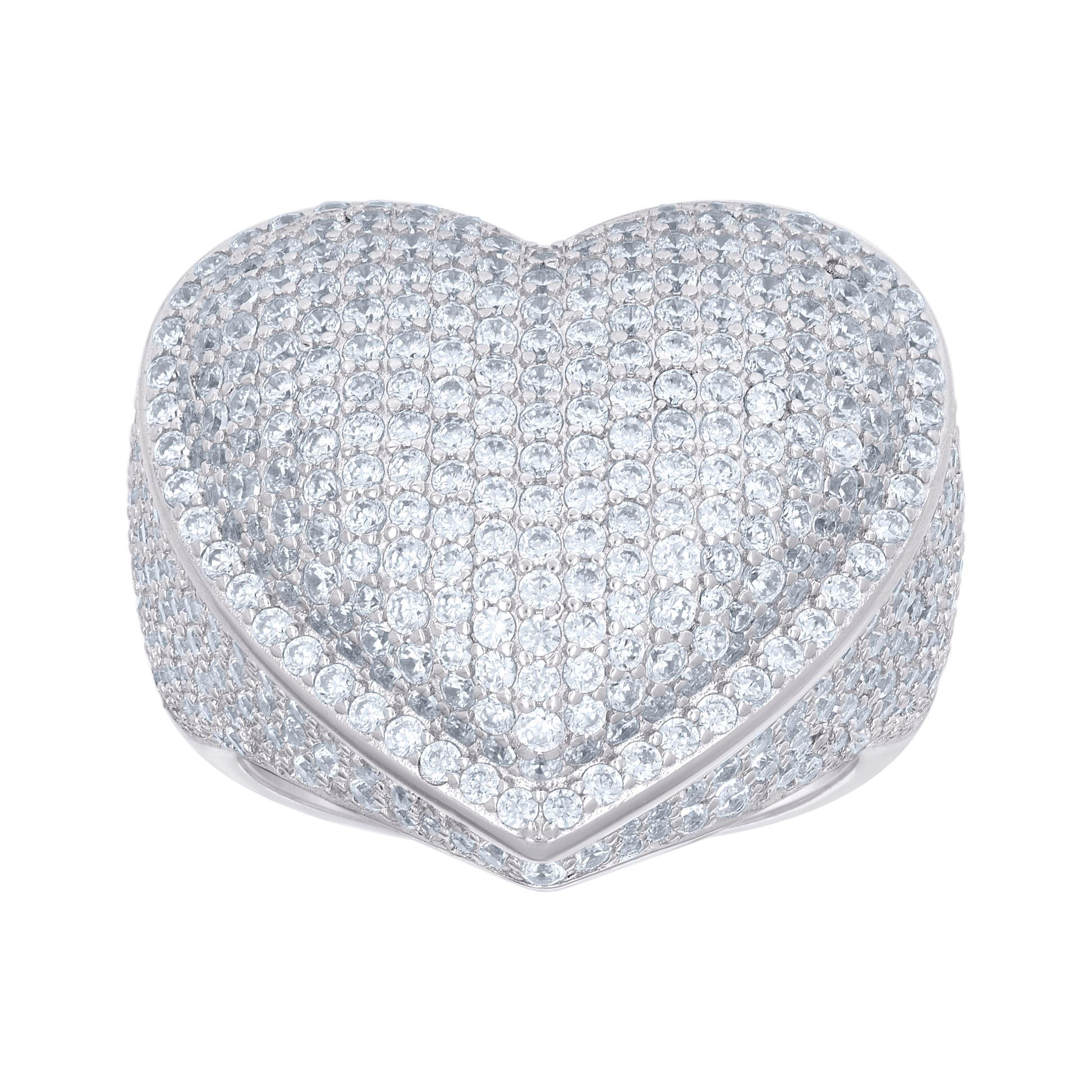 925 Sterling Silver Womens Cubic-Zirconia Cluster Heart Ring Size 10