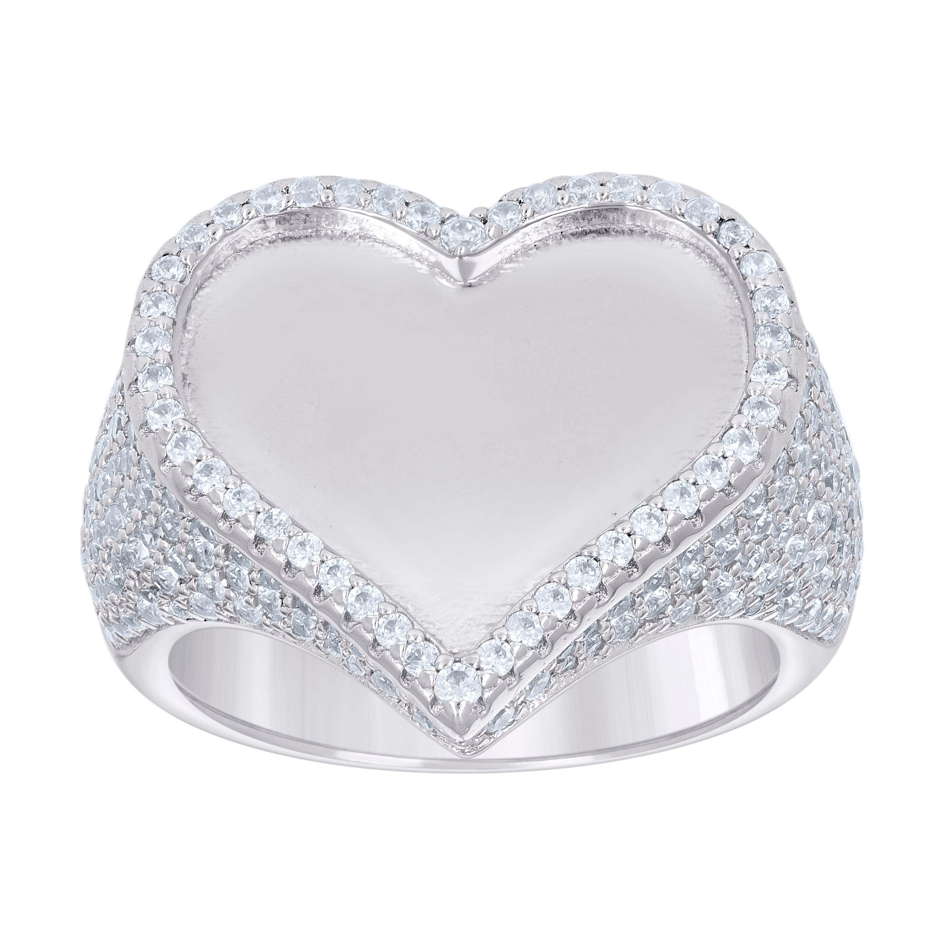925 Sterling Silver Womens Cubic-Zirconia Cluster Heart Ring Size 10