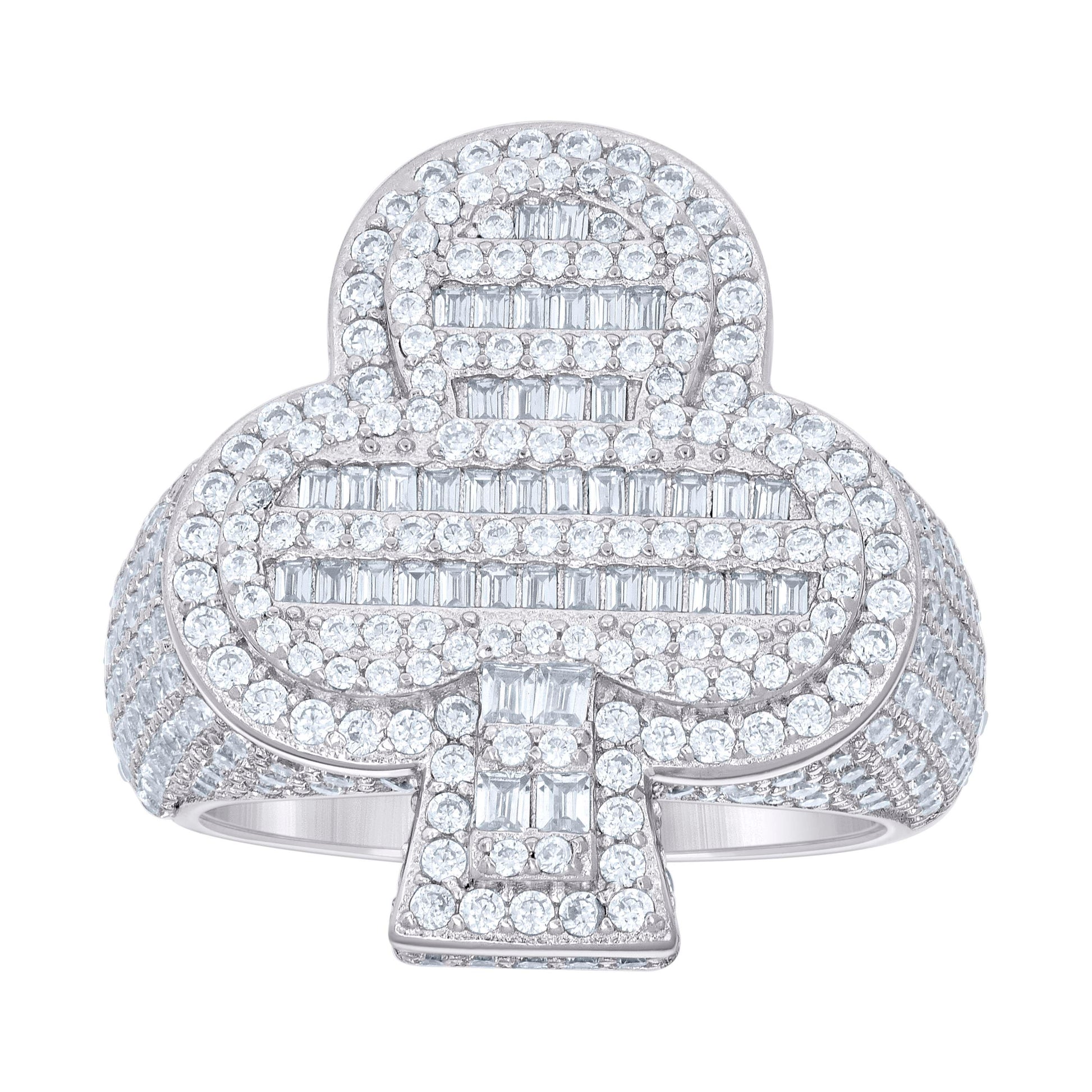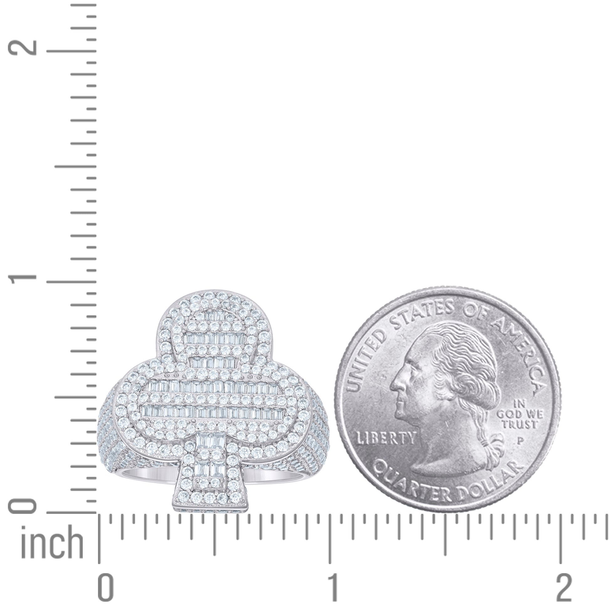 925 Sterling Silver Mens Round Baguette Cubic-Zirconia Cluster Clover Good Luck Ring Size 10