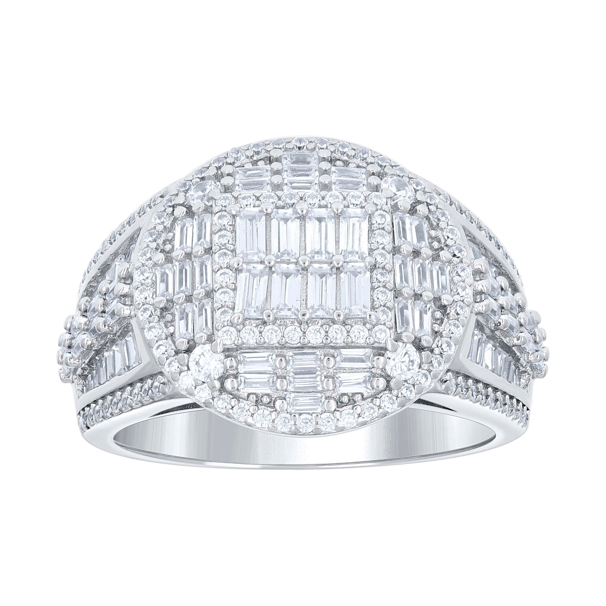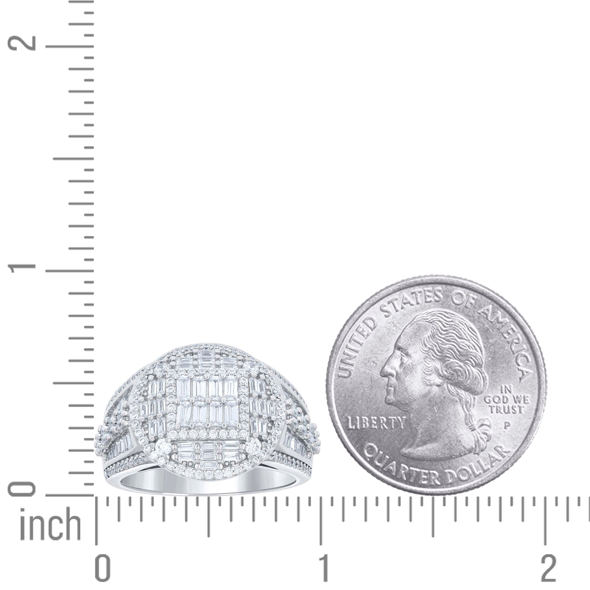925 Sterling Silver Mens Round Baguette Cubic-Zirconia Round Head Fashion Ring Size 10