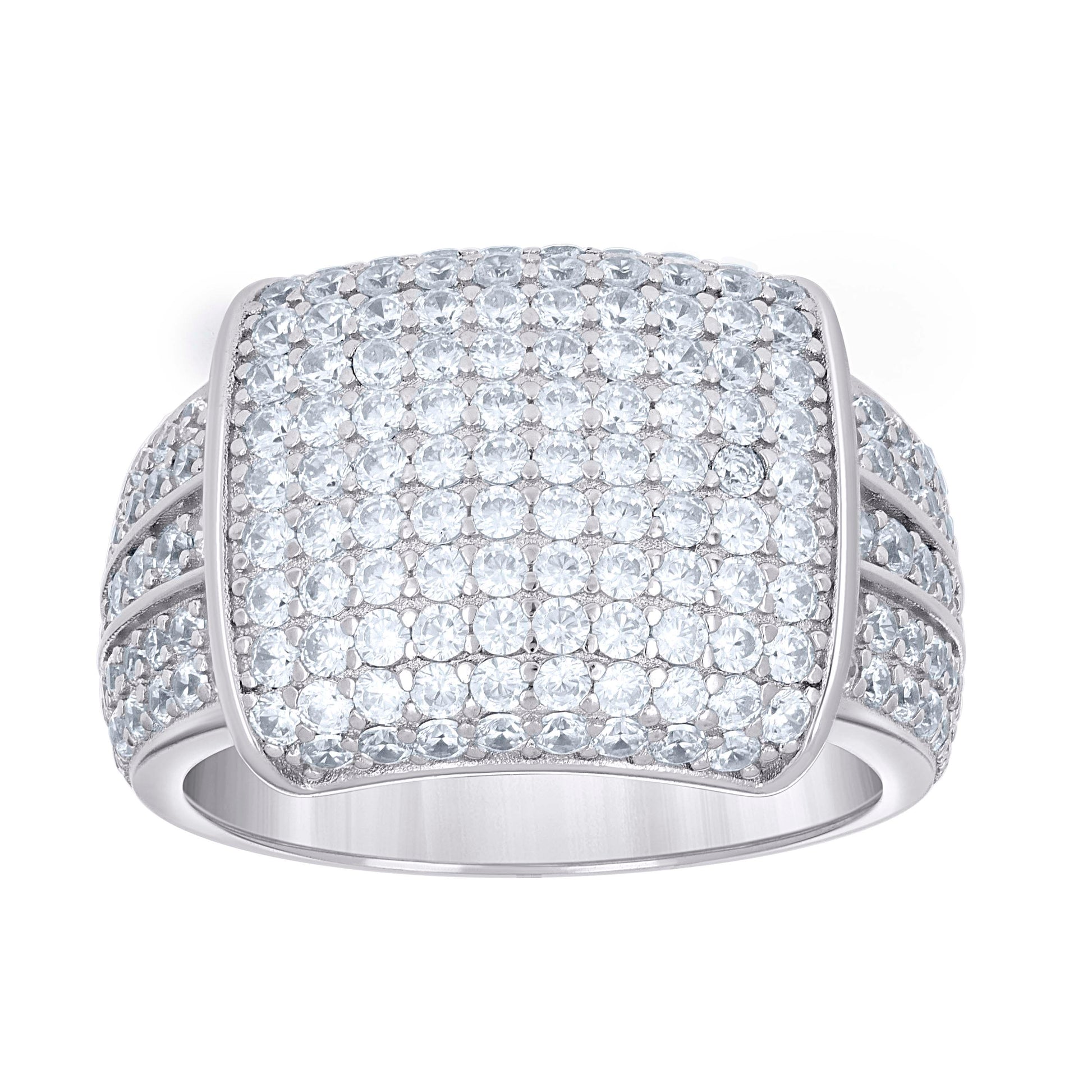 925 Sterling Silver Mens Cubic-Zirconia Cluster Square Head Fashion Ring Size 9