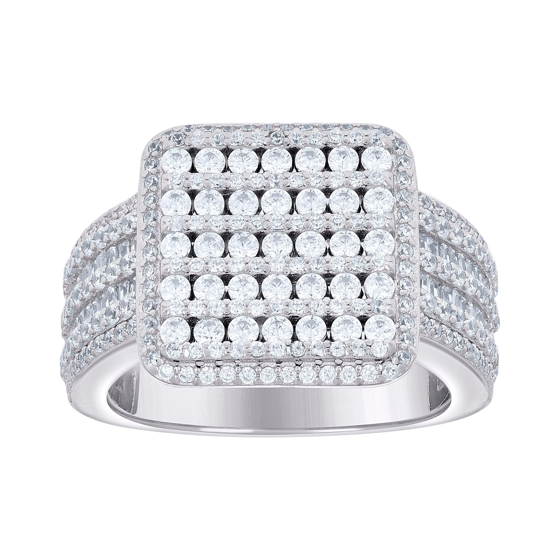 925 Sterling Silver Mens Cubic-Zirconia Square Head Fashion Ring Size 10