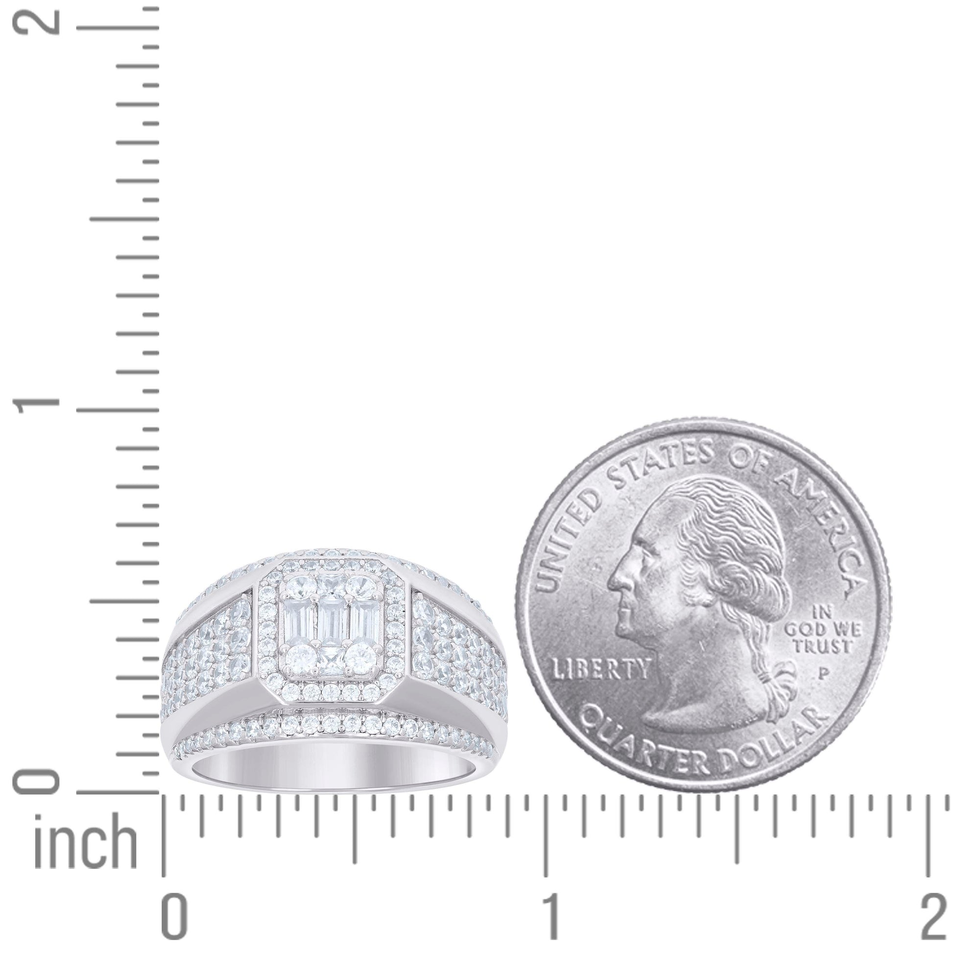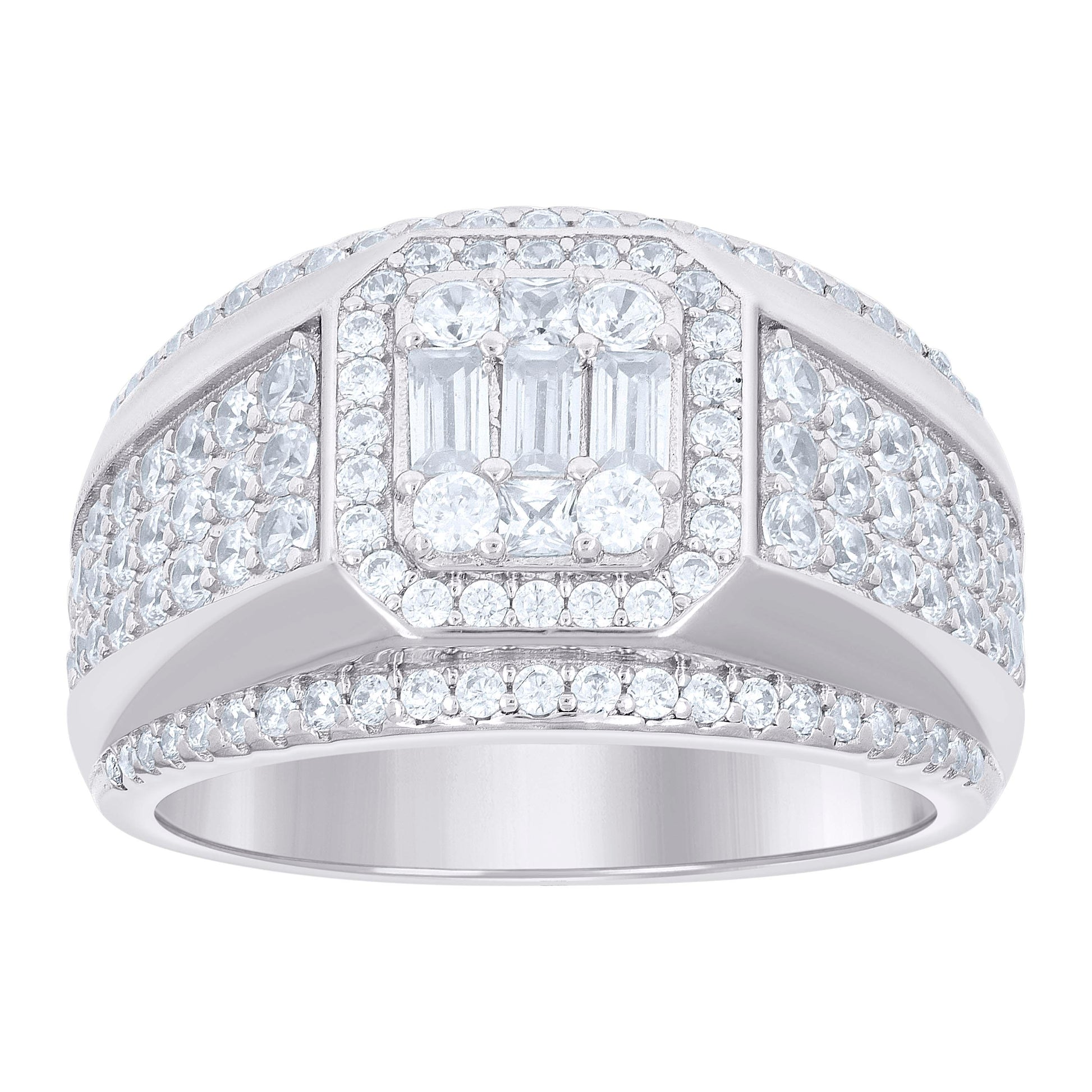 925 Sterling Silver Mens Round Baguette Cubic-Zirconia Fashion Ring Size 9