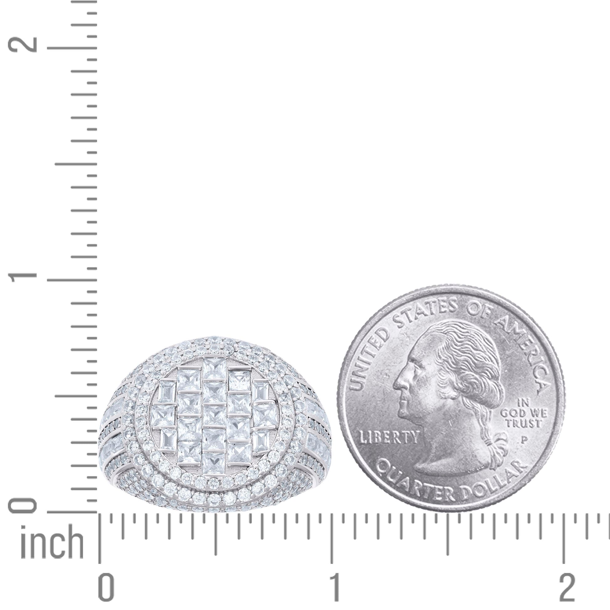 925 Sterling Silver Mens Round Baguette Cubic-Zirconia Round Head Fashion Ring Size 10