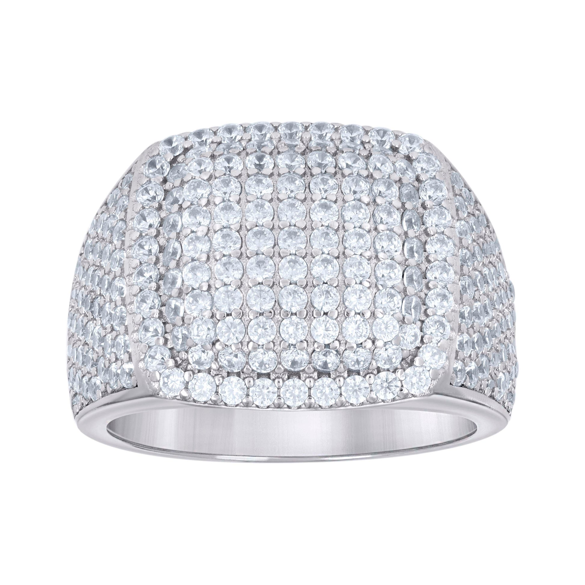 925 Sterling Silver Mens Cubic-Zirconia Cluster Square Head Fashion Ring Size 10