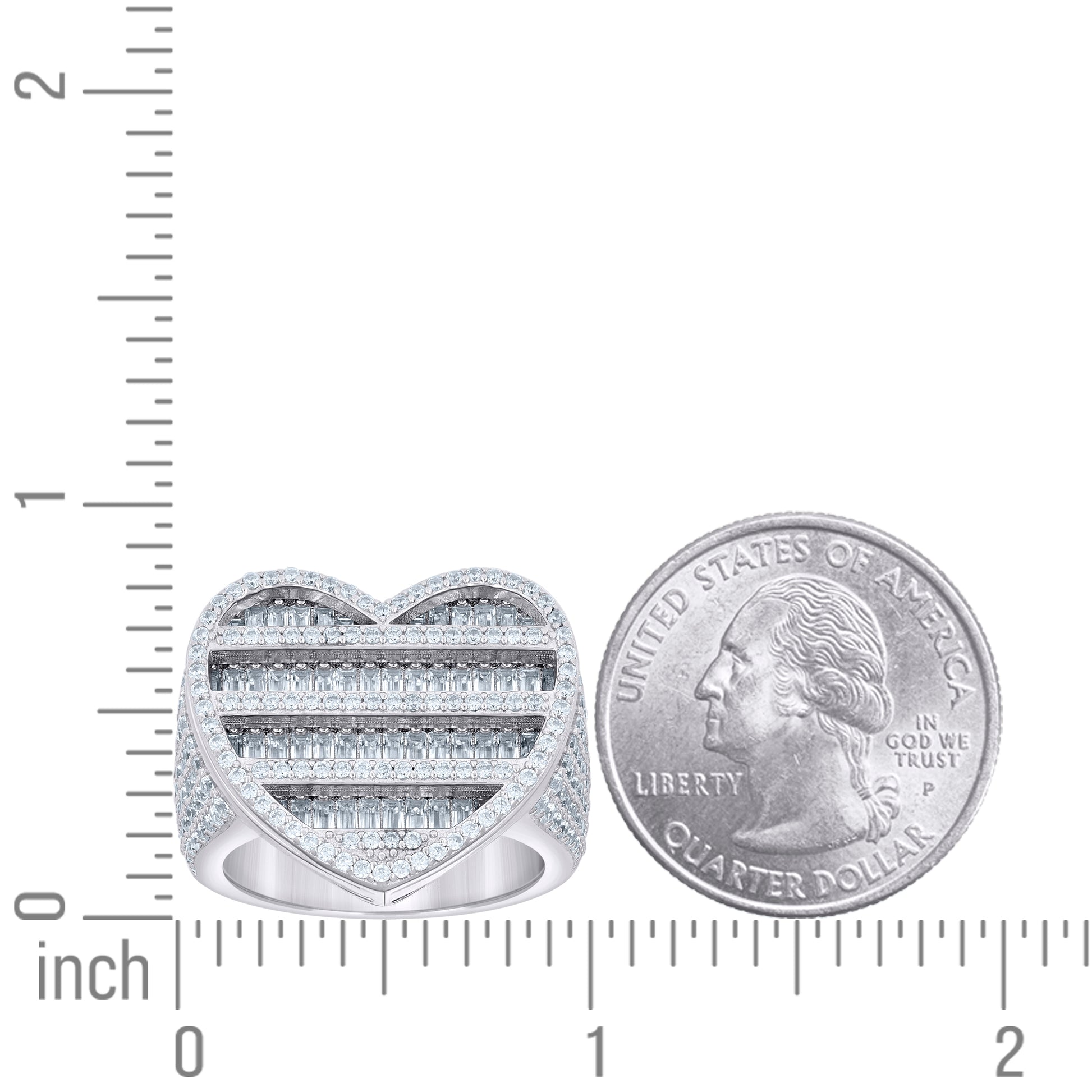 925 Sterling Silver Womens Round Baguette Cubic-Zirconia Cluster Heart Ring Size 10