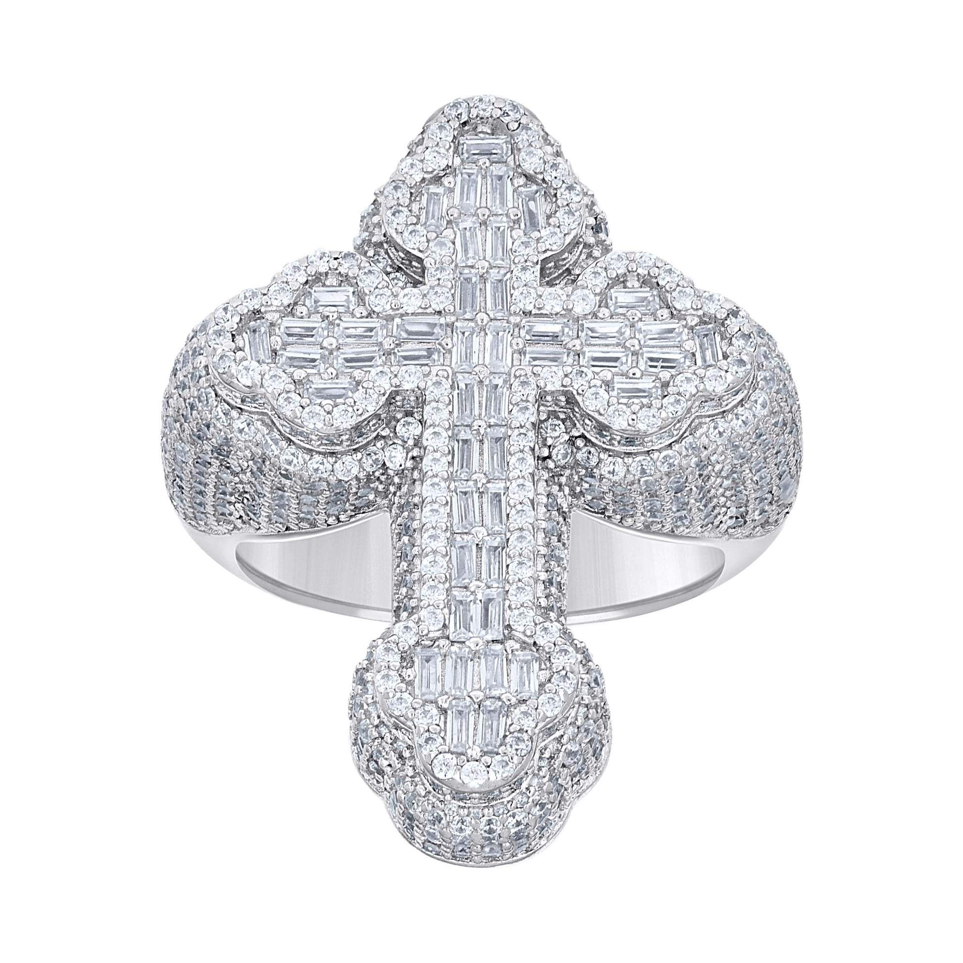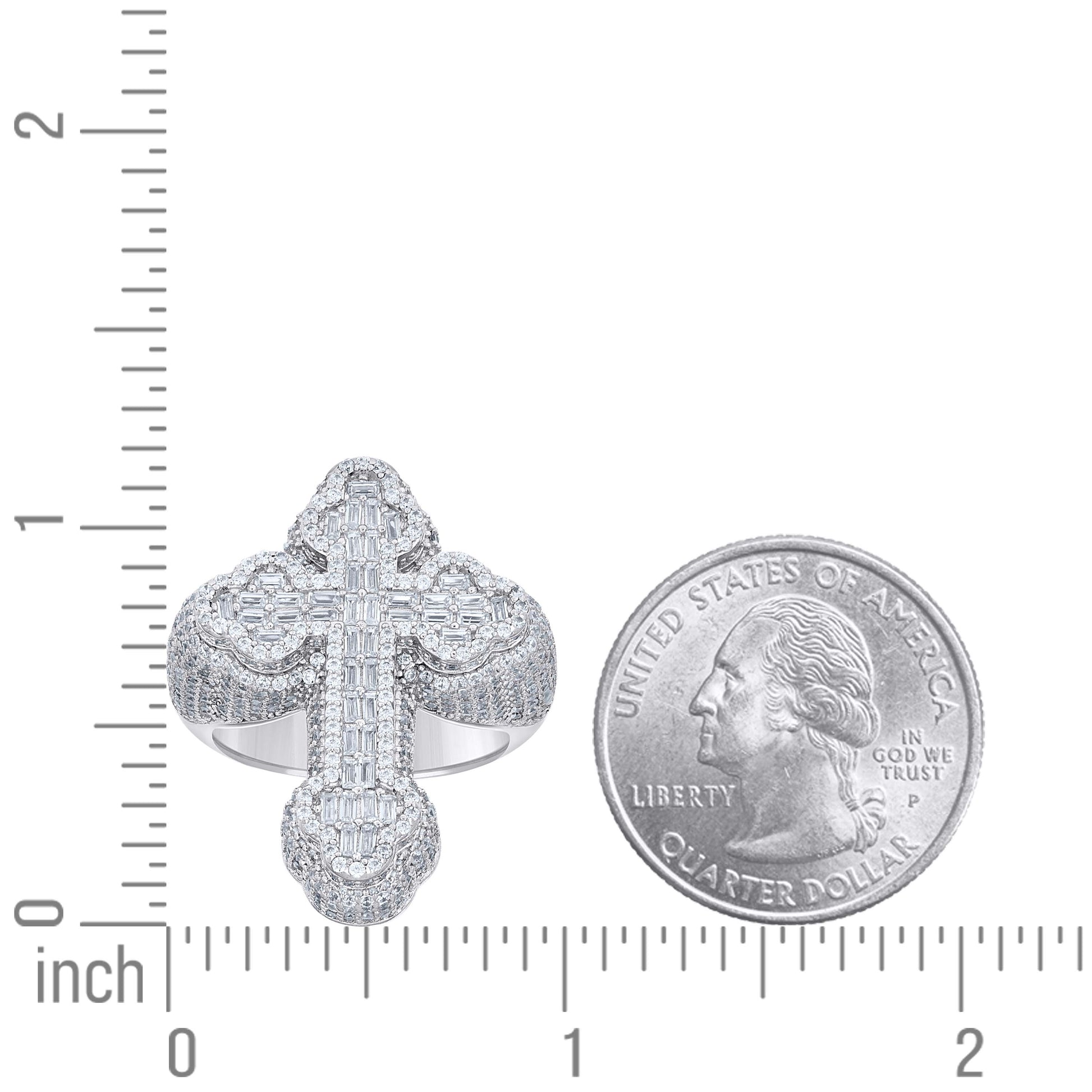 925 Sterling Silver Mens Baguette Round Cubic-Zirconia Cross Religious Ring S9