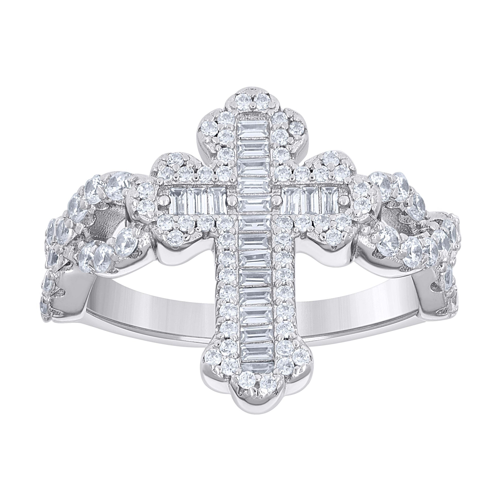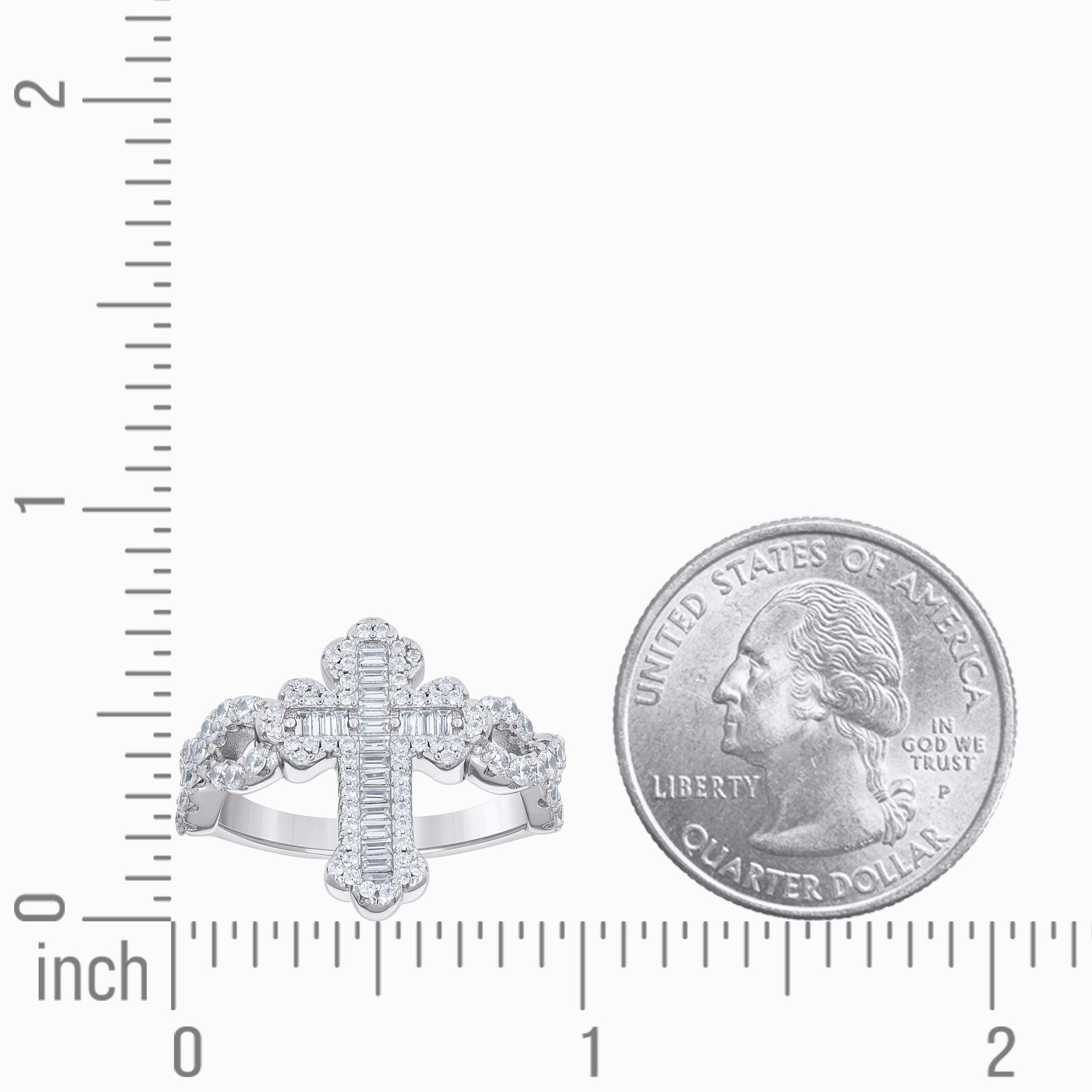 925 Sterling Silver Mens Baguette Round Cubic-Zirconia Cross Religious Ring S9