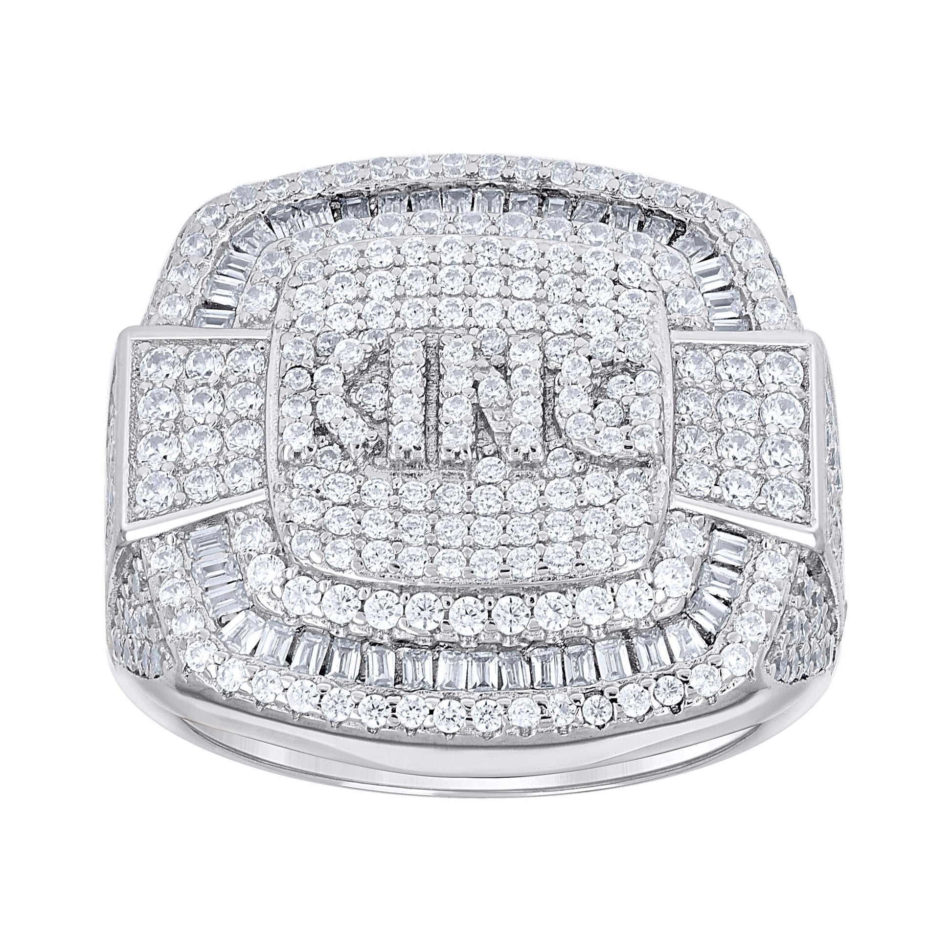 925 Sterling Silver Mens Baguette Round Cubic-Zirconia King Square Head Fashion Ring S9