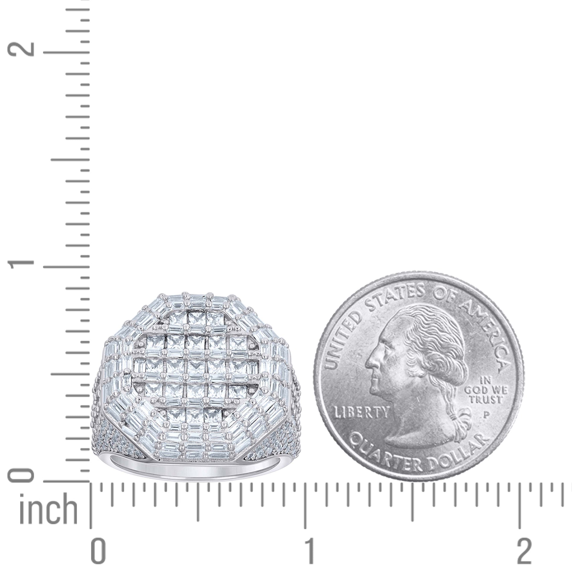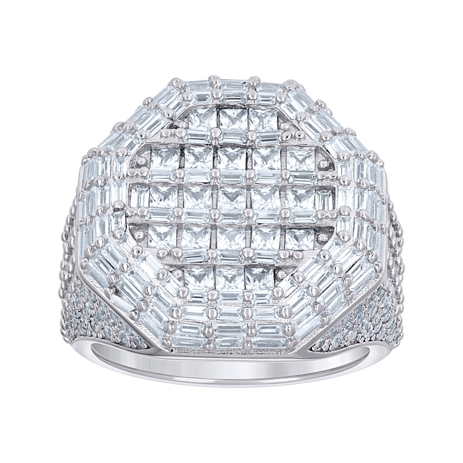925 Sterling Silver Mens Princess-Cut/Baguette Round Cubic-Zirconia Octagon Head Fashion Ring S9