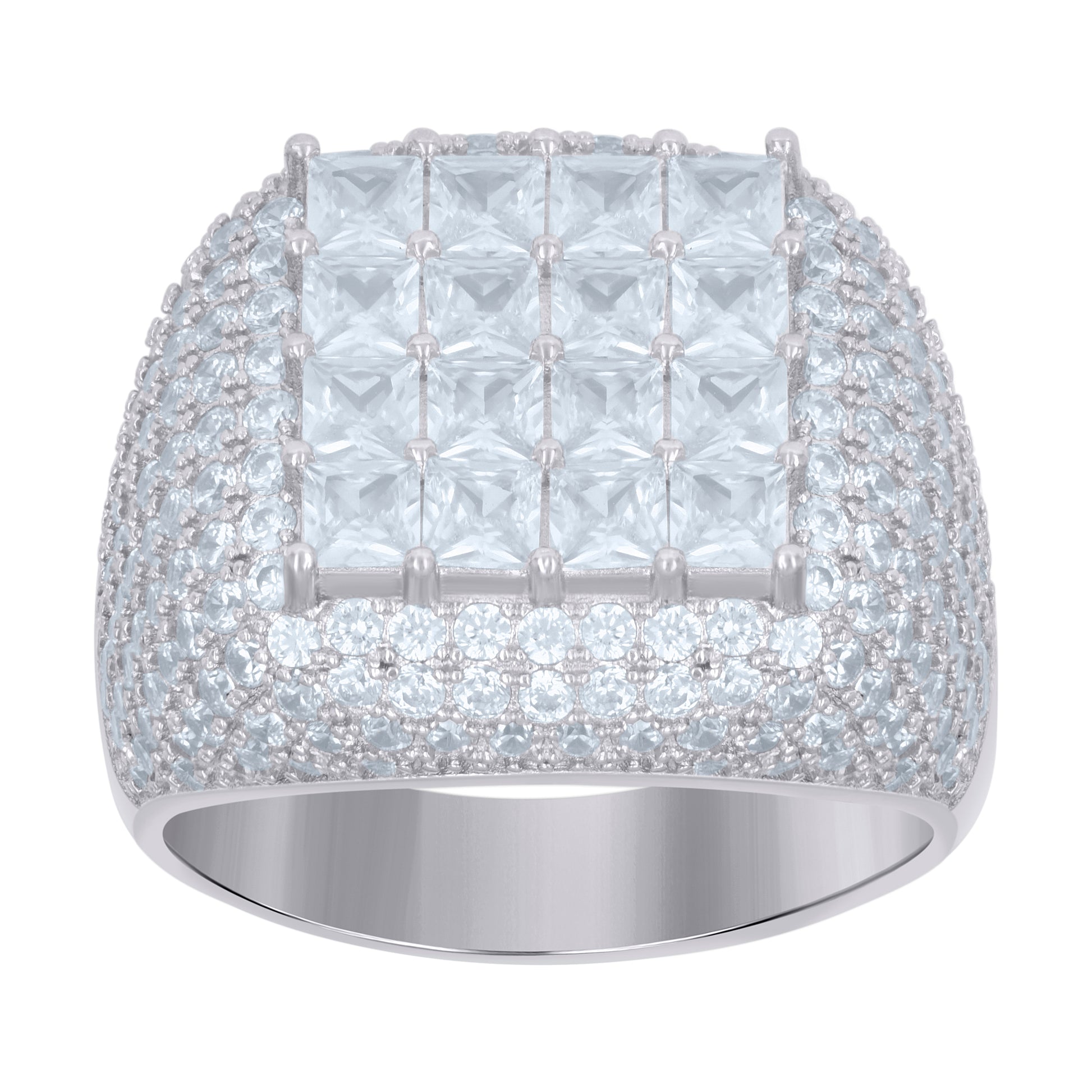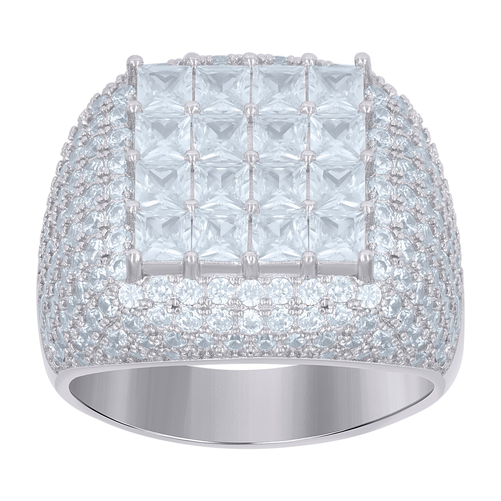 925 Sterling Silver Mens Cubic Zirconia Two-Tone Princess-Cut Square Size-6 -12.5mm Ring