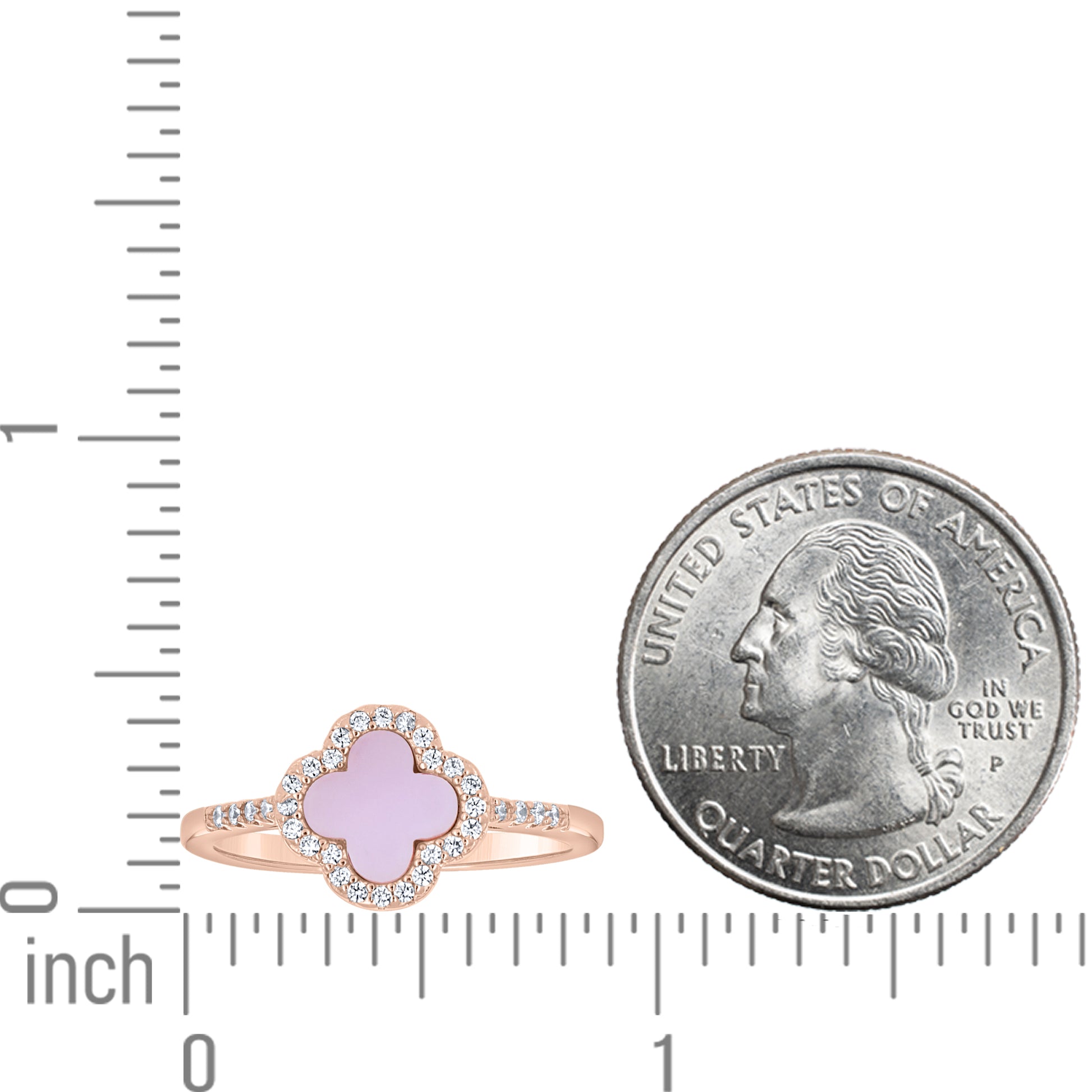 925 Sterling Silver Rose-Tone Womens Cubic-Zirconia Pink Enameled Clover Good Luck Ring Size 5