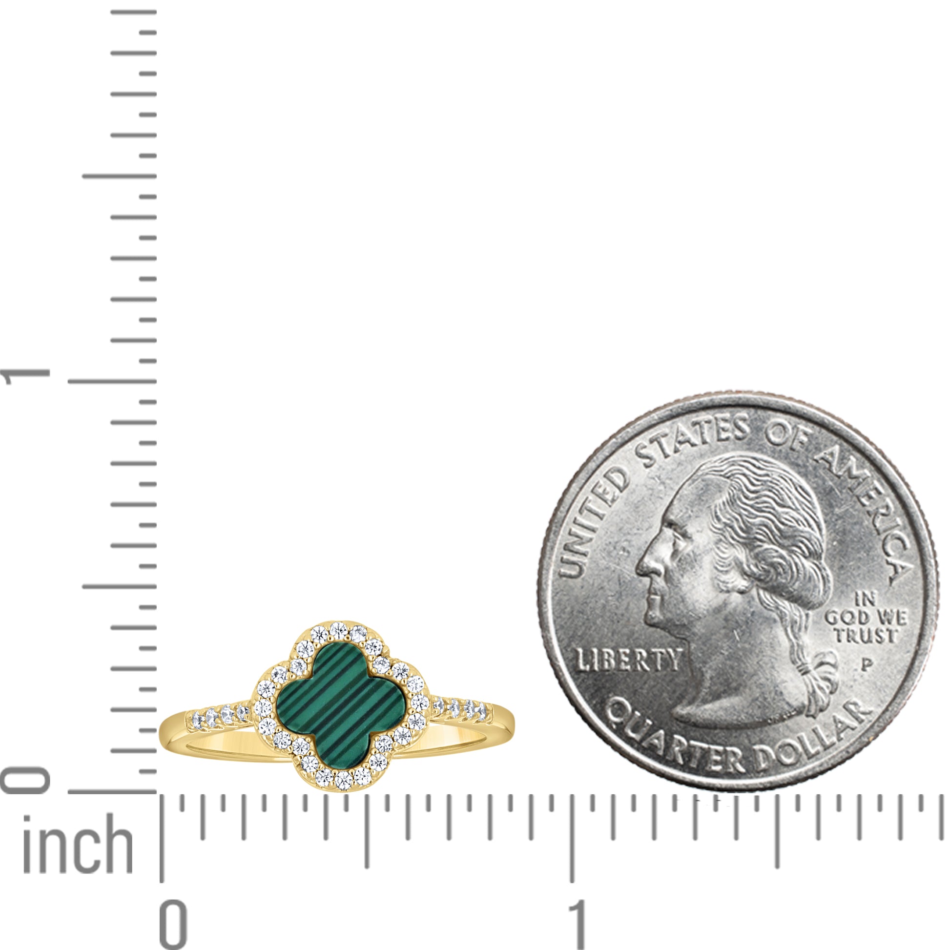 925 Sterling Silver Yellow-Tone Womens Cubic-Zirconia Green Enameled Clover Good Luck Ring Size 5