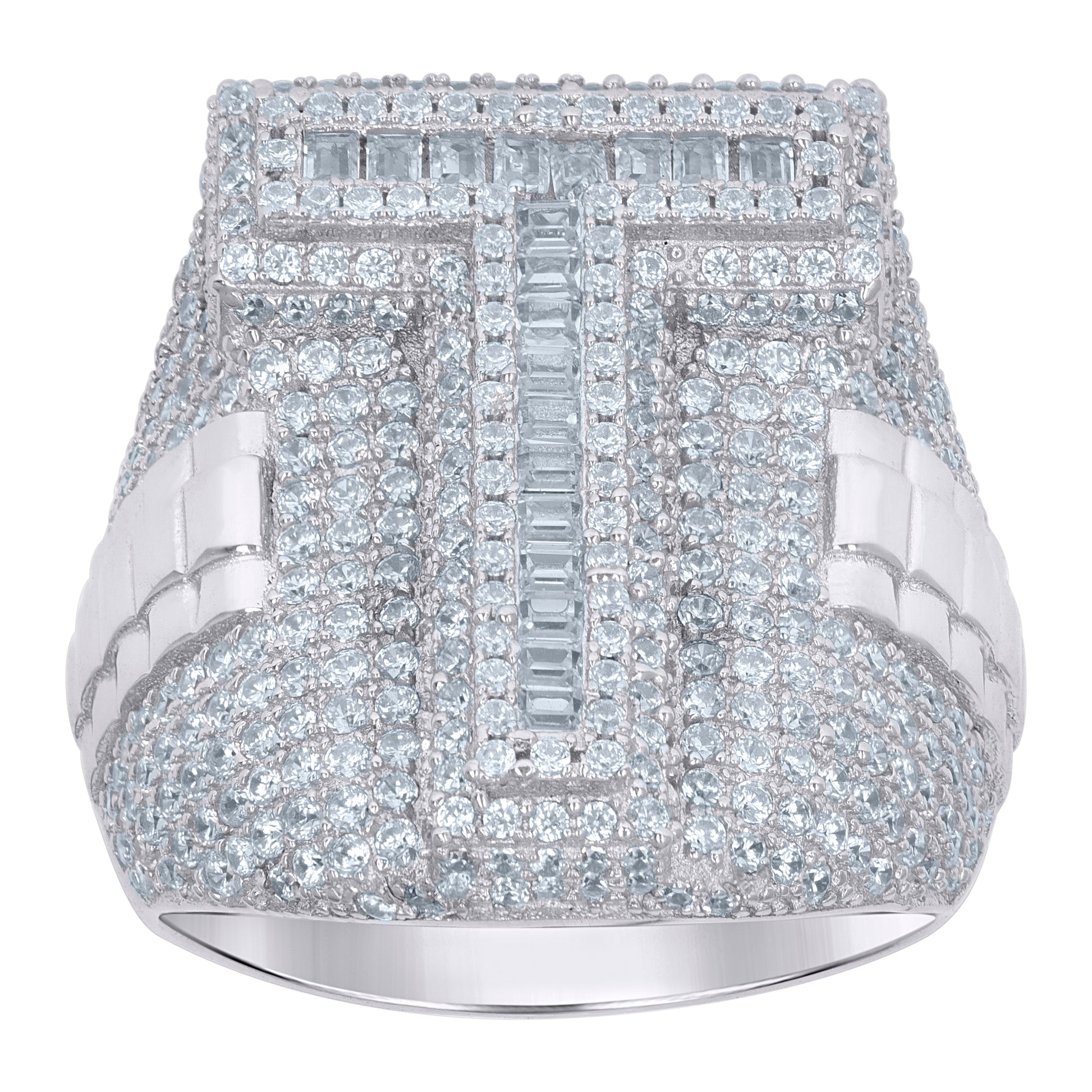 925 Sterling Silver Mens Baguette Cubic-Zirconia T Alphabet Initials Ring