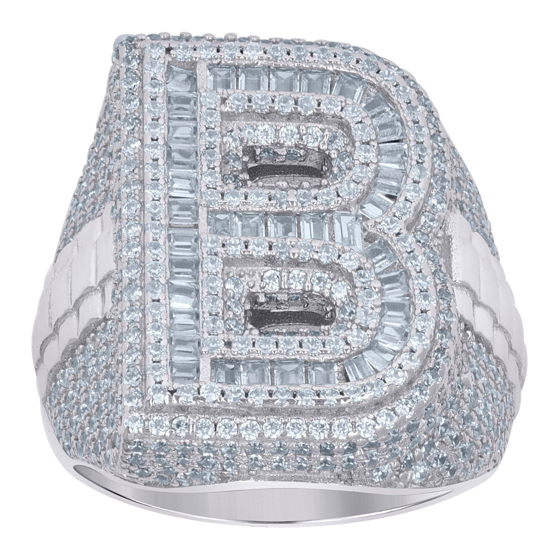 925 Sterling Silver Mens Baguette Cubic-Zirconia B Alphabet Initials Ring