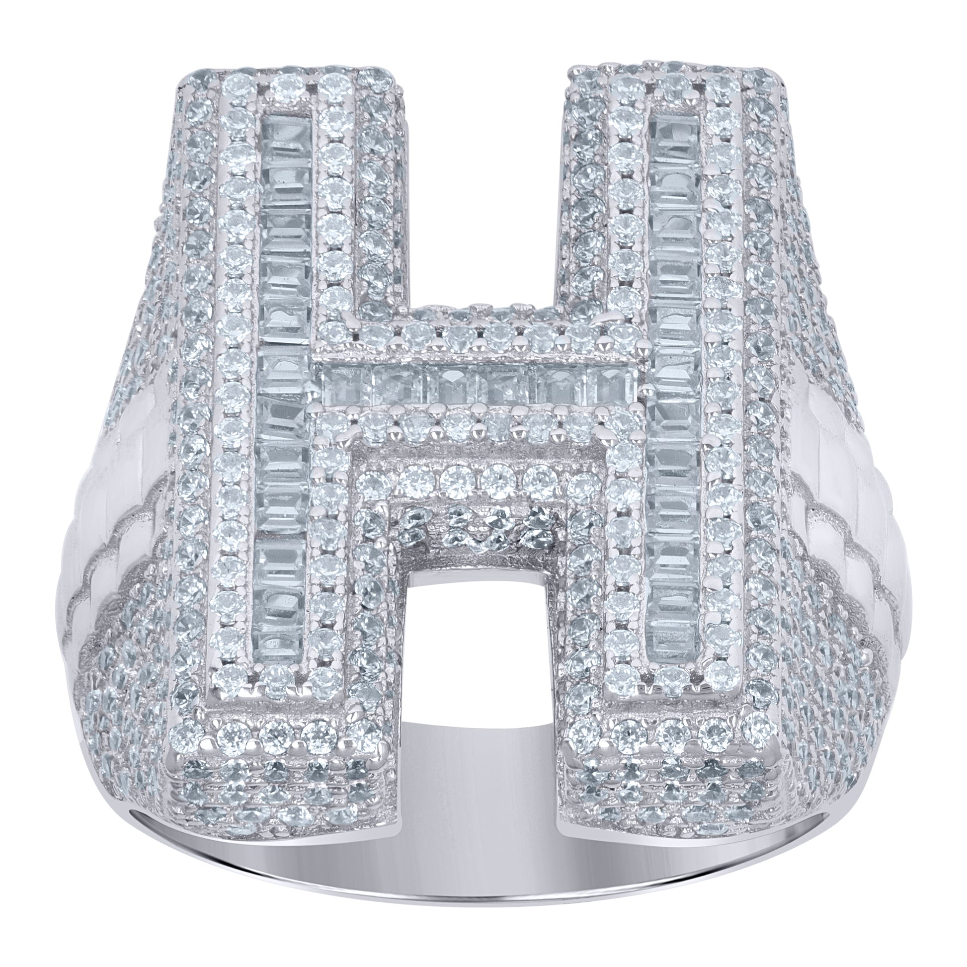 925 Sterling Silver Mens Baguette Cubic-Zirconia H Alphabet Initials Ring
