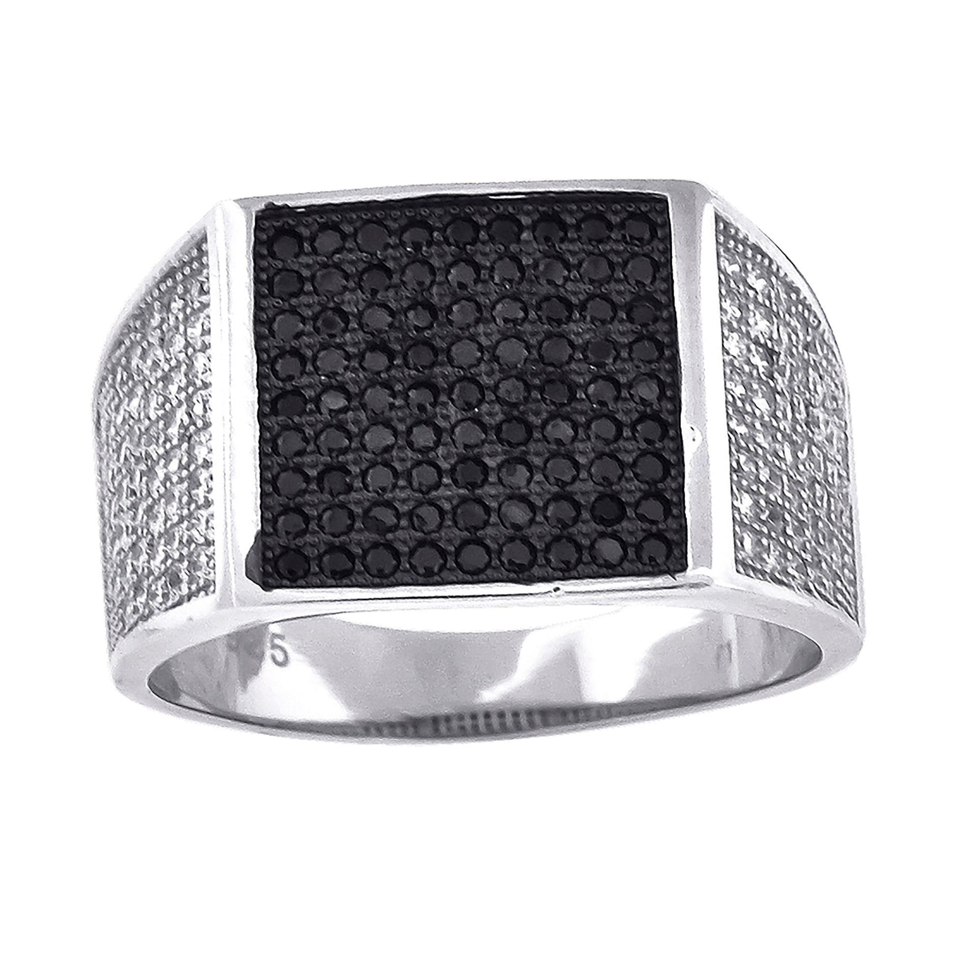 925 Sterling Silver Black-Tone Mens White Black Cubic-Zirconia Square Head Fashion Ring Size 8