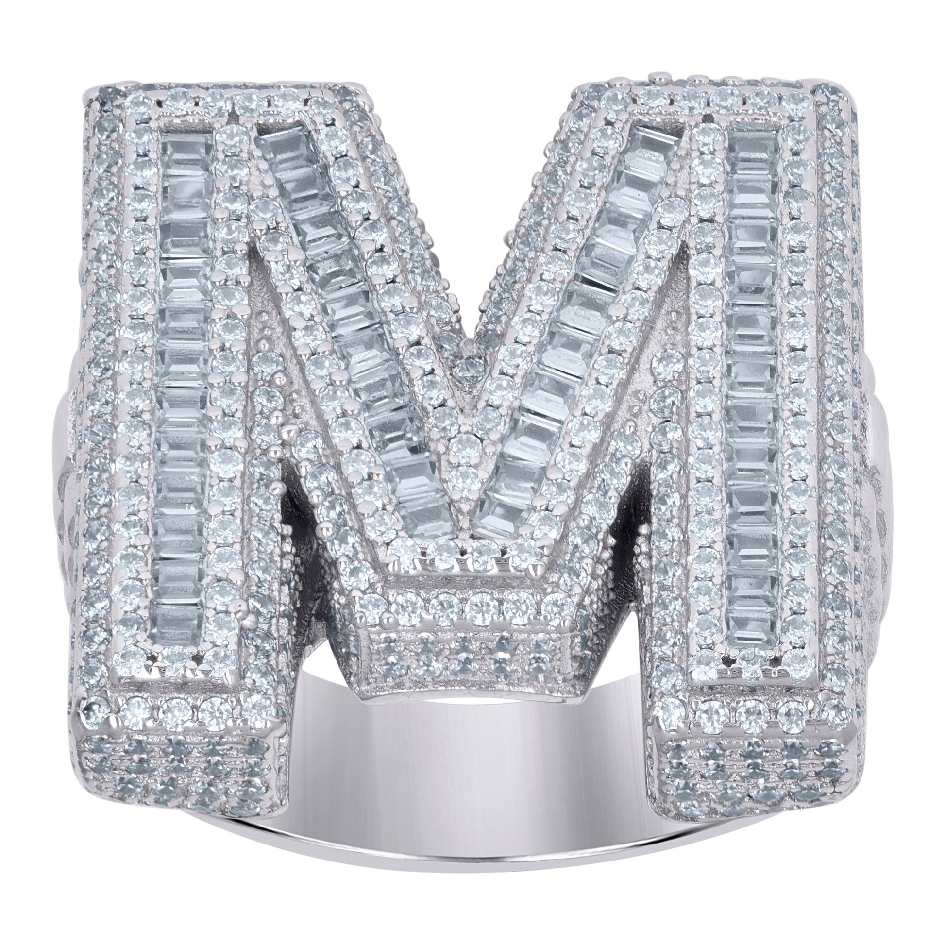 925 Sterling Silver Mens Baguette Cubic-Zirconia M Alphabet Initials Ring