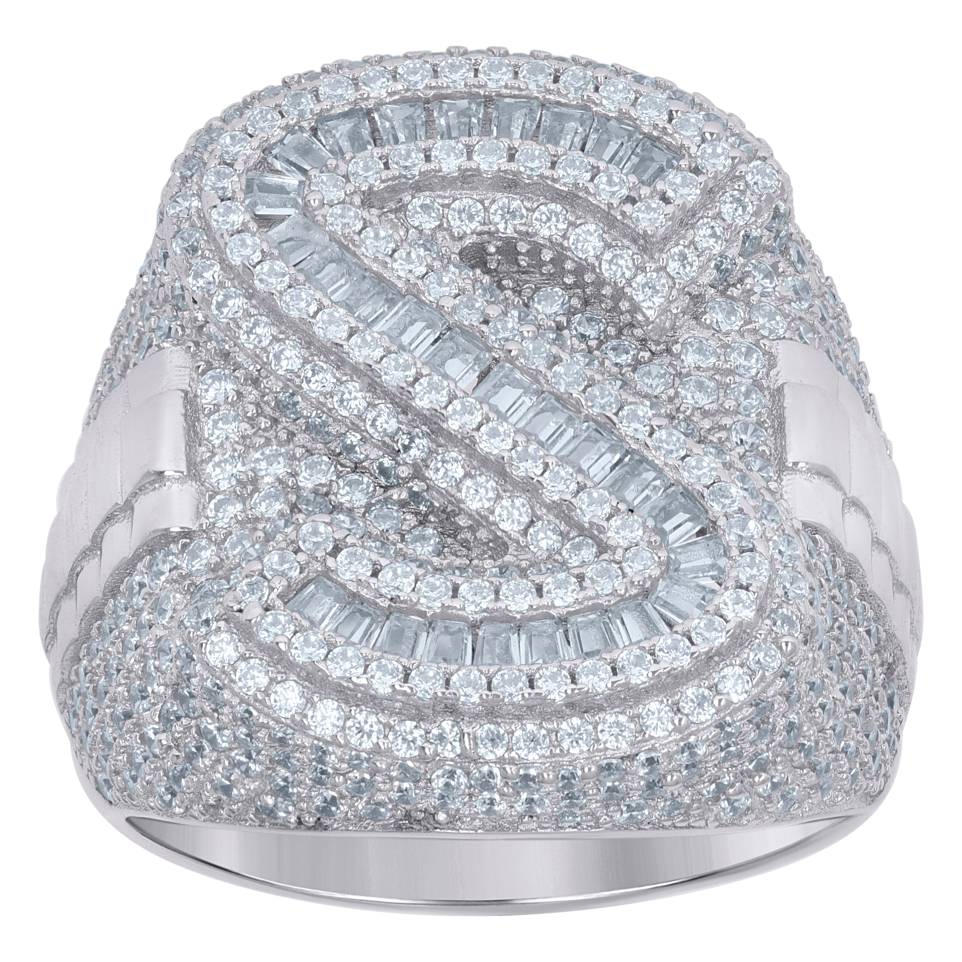 925 Sterling Silver Mens Baguette Cubic-Zirconia S Alphabet Initials Ring