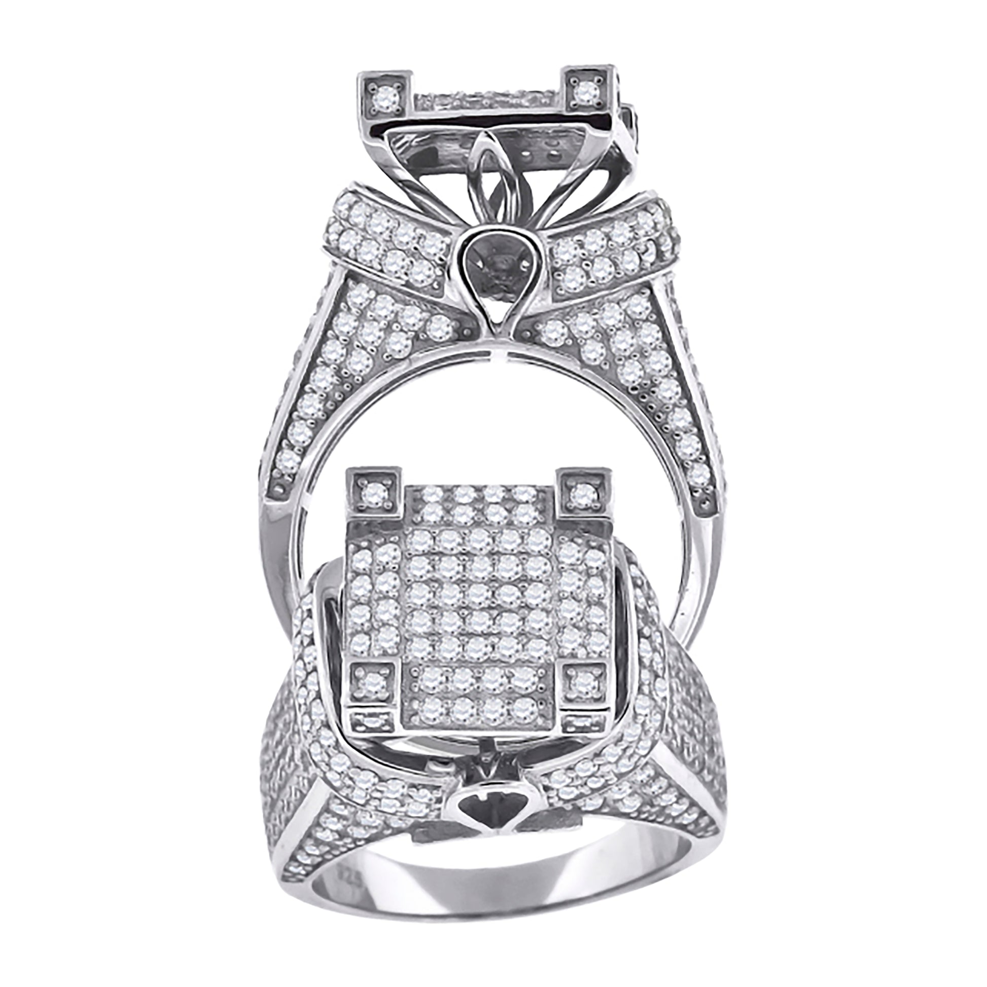 925 Sterling Silver Mens Cubic-Zirconia Square Head Fashion Ring Size 6