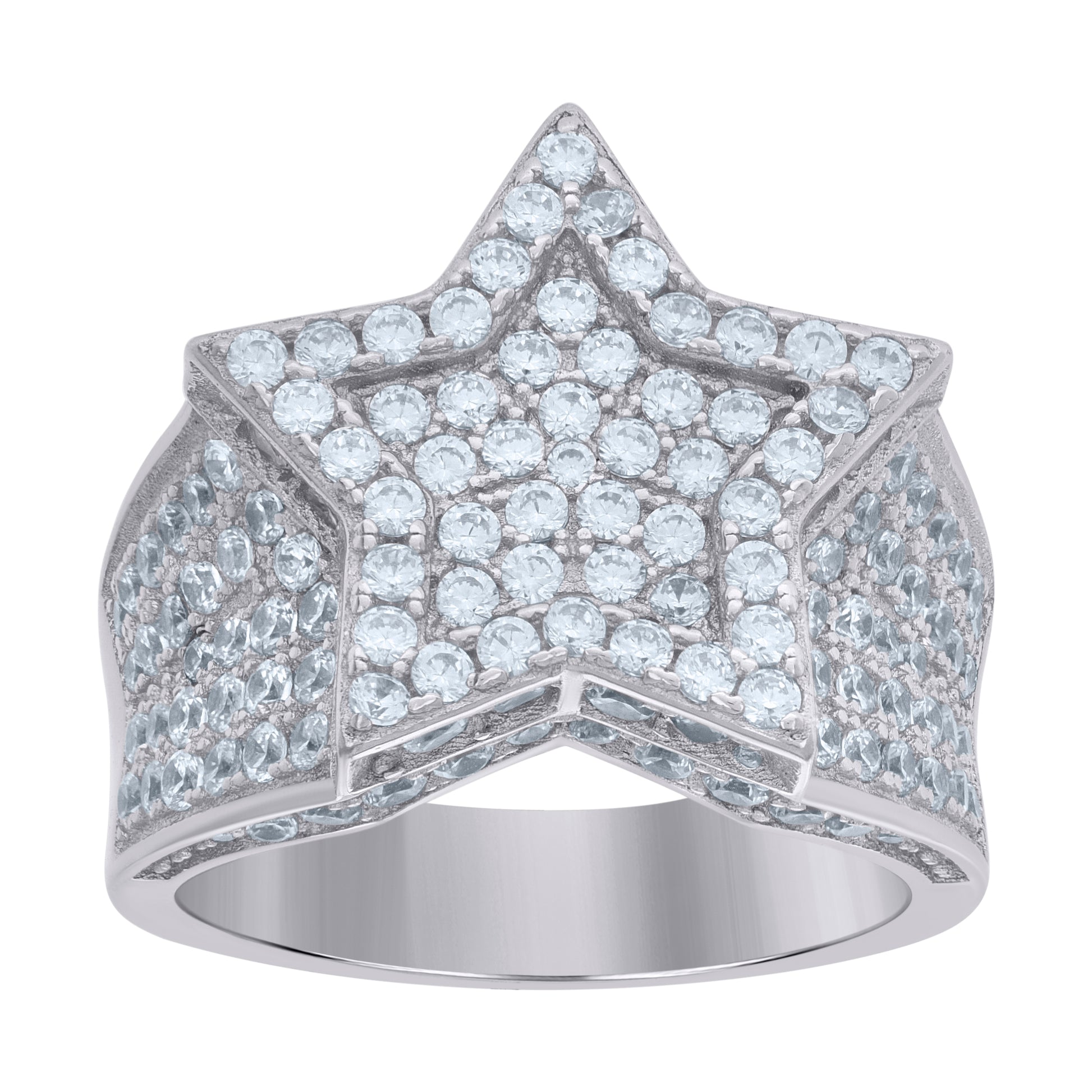 925 Sterling Silver Mens Cubic-Zirconia Star Cluster Fashion Ring Size 7
