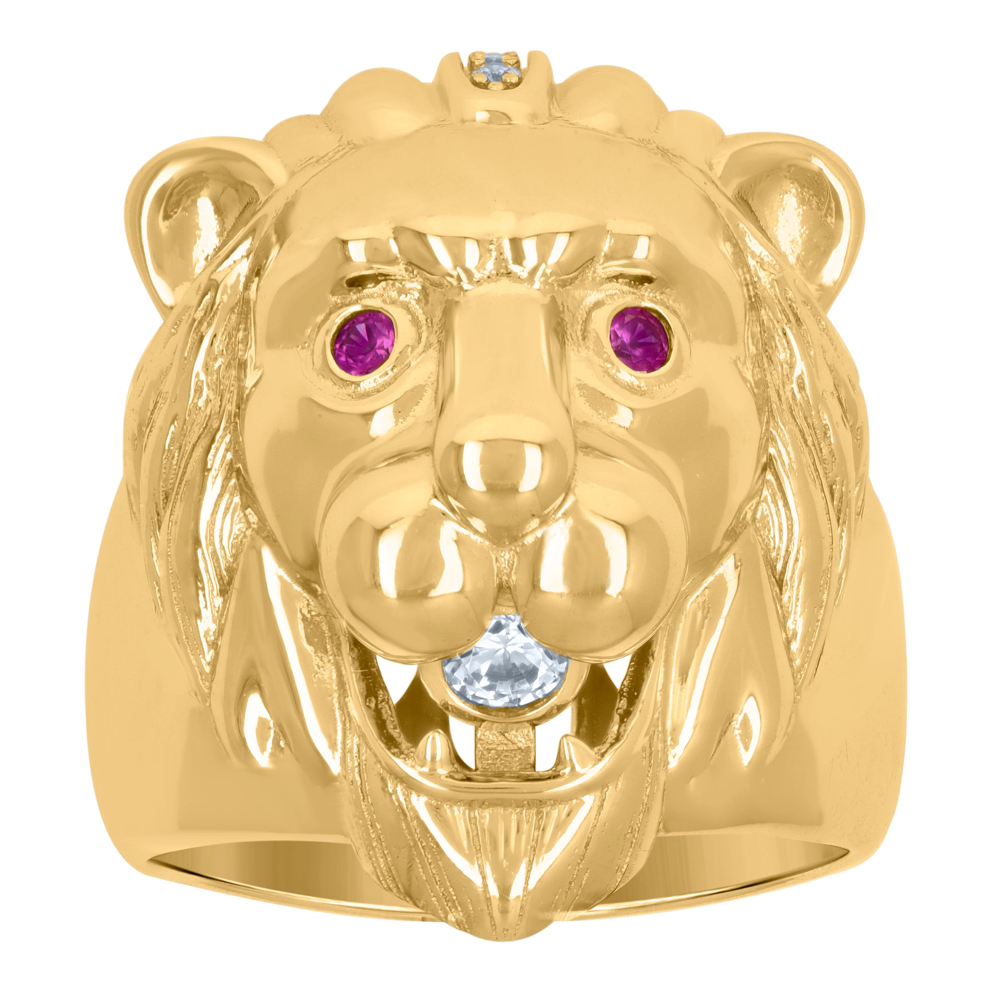 925 Sterling Silver Mens Pink Cubic-Zirconia Leo/Lion Animal Zodiac Sign/Wildlife Ring Size 8