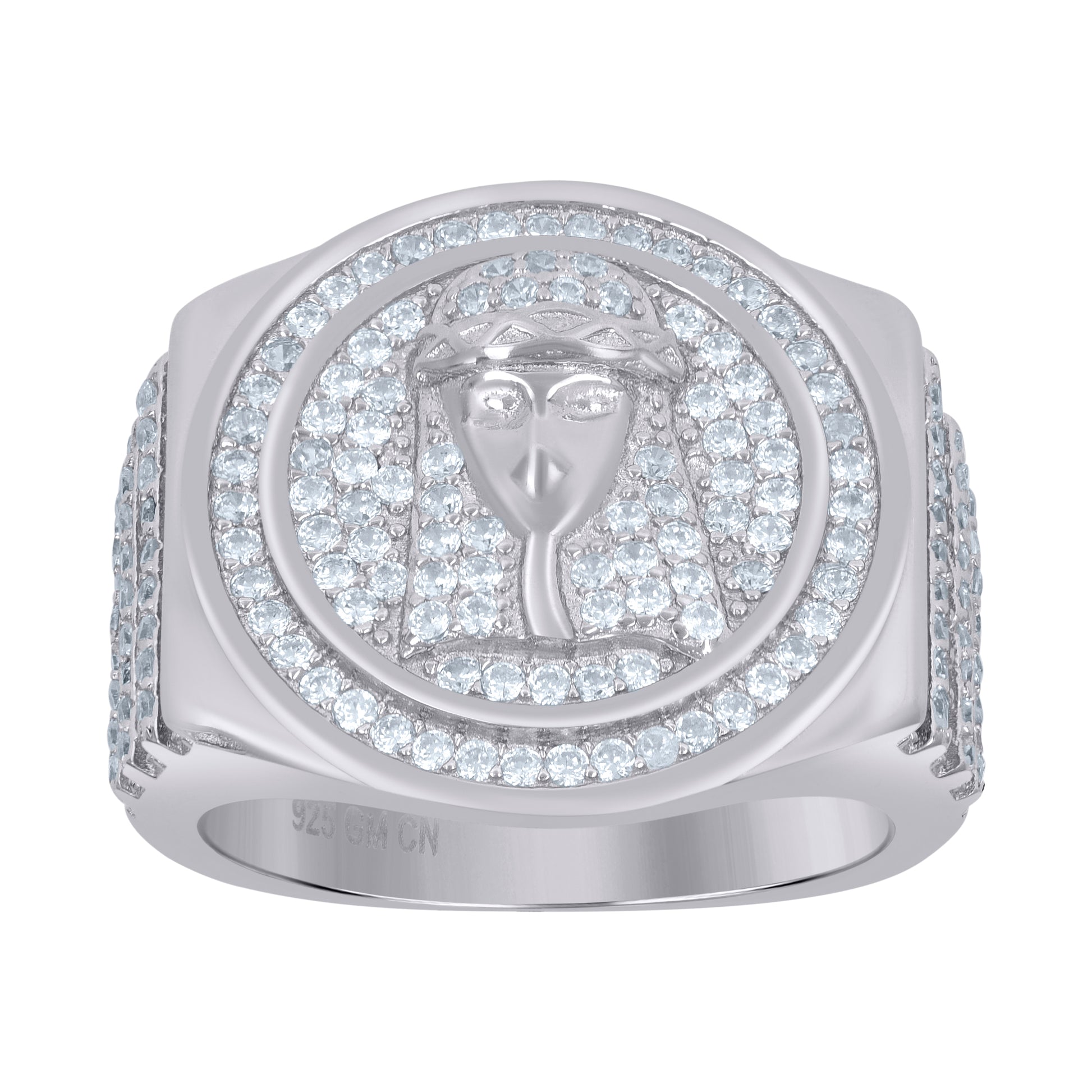 925 Sterling Silver Mens Cubic-Zirconia Jesus Religious Ring Size 9