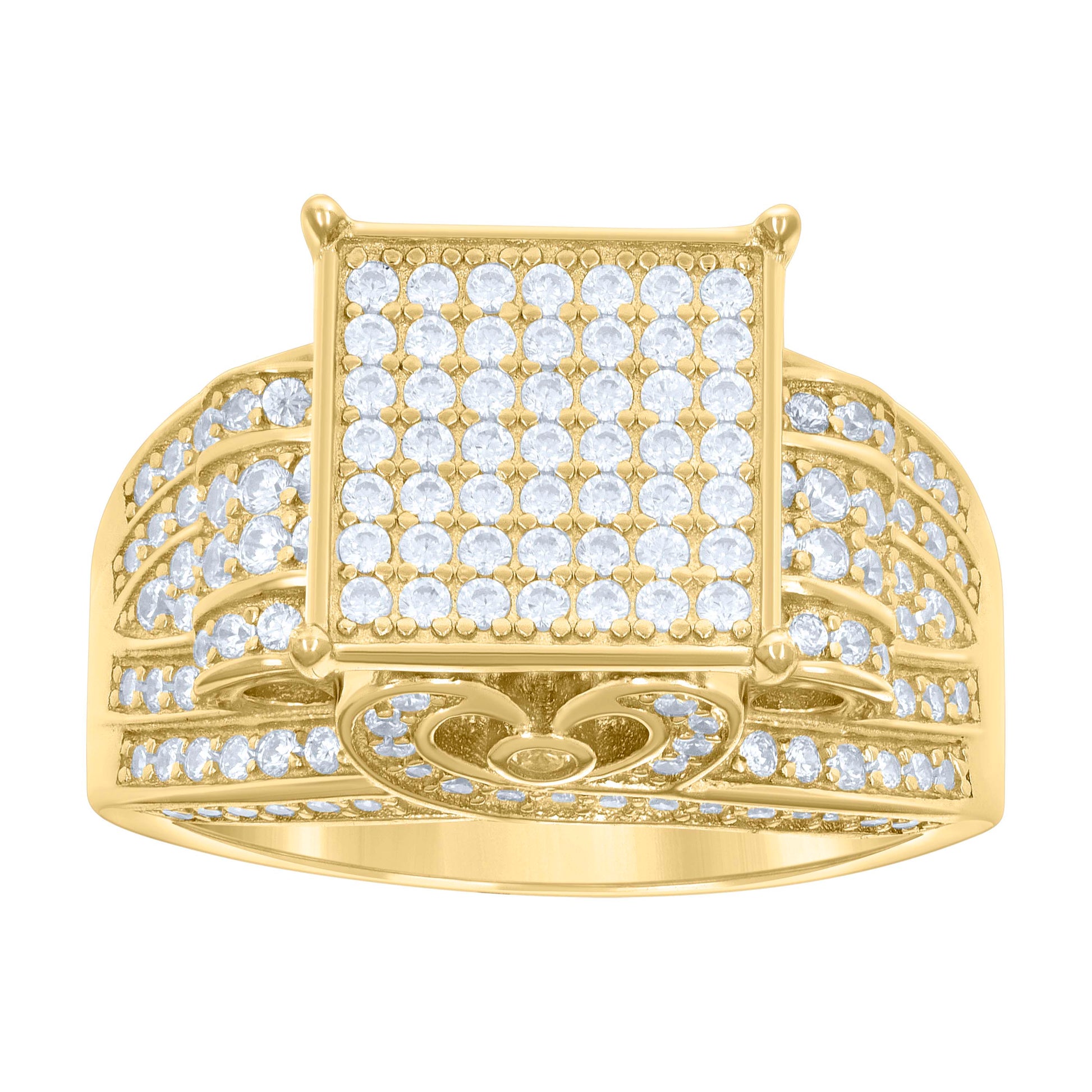925 Sterling Silver Yellow-Tone Mens Cubic-Zirconia Square Head Fashion Ring Size 6