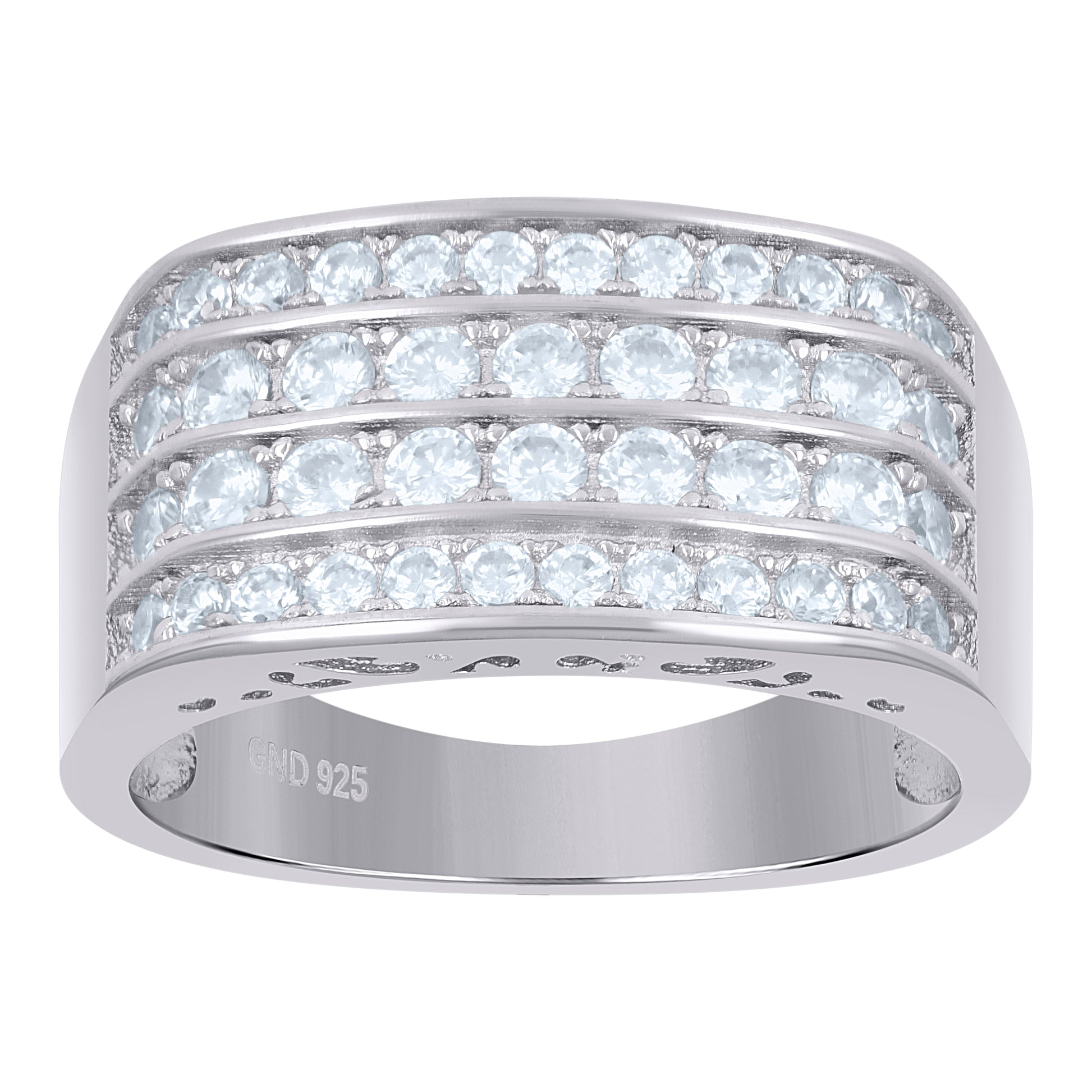 925 Sterling Silver Mens Cubic Zirconia Four Row Size-6 -9.5mm Band Ring