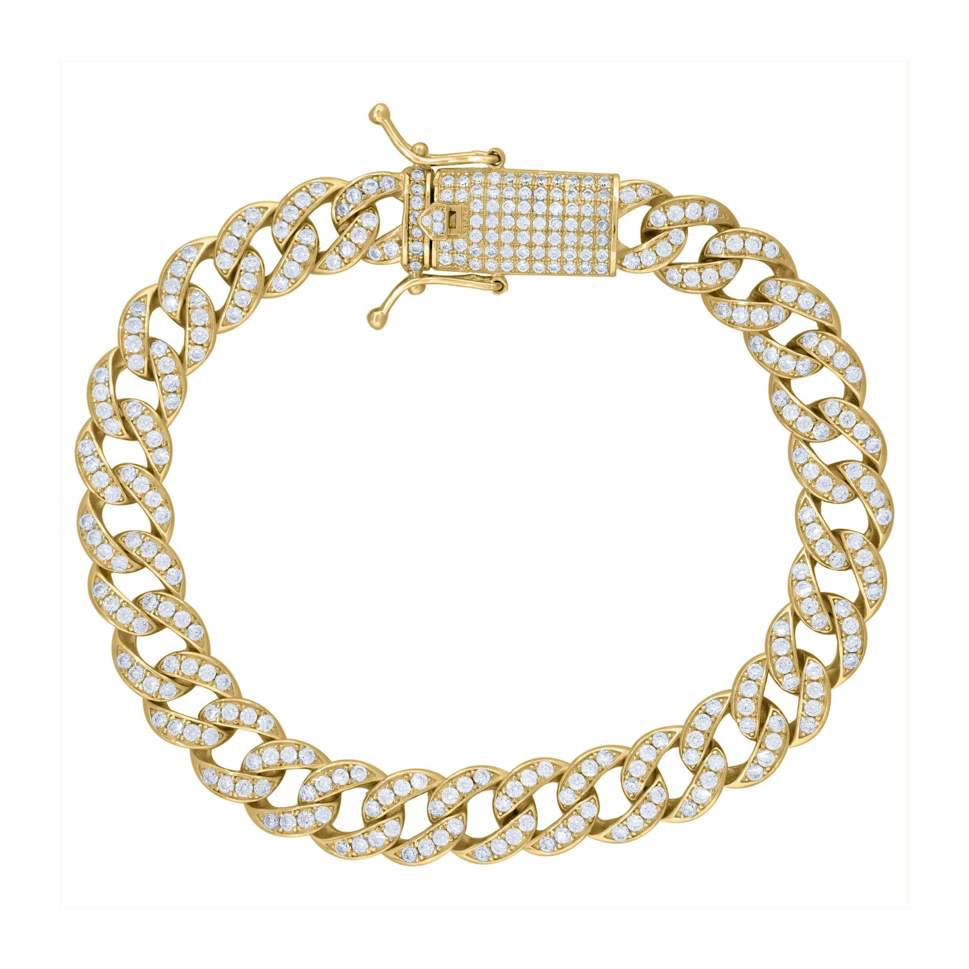 925 Sterling Silver Yellow-tone Moissanite 9mm Miami Cuban Chain