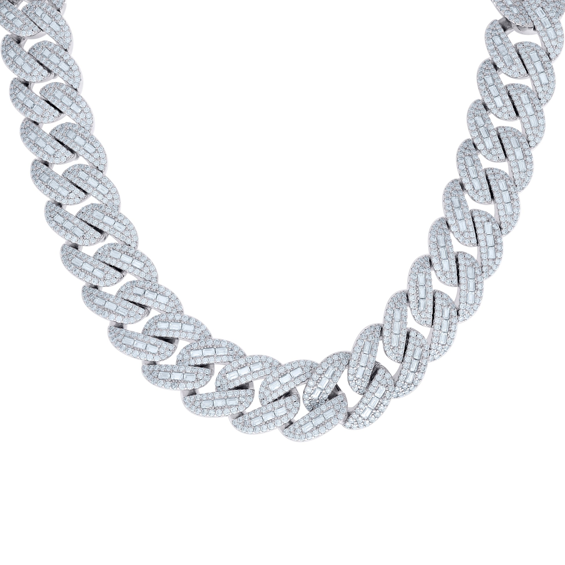925 Sterling Silver Baguette Round Moissanite Miami Cuban Chain 20mm