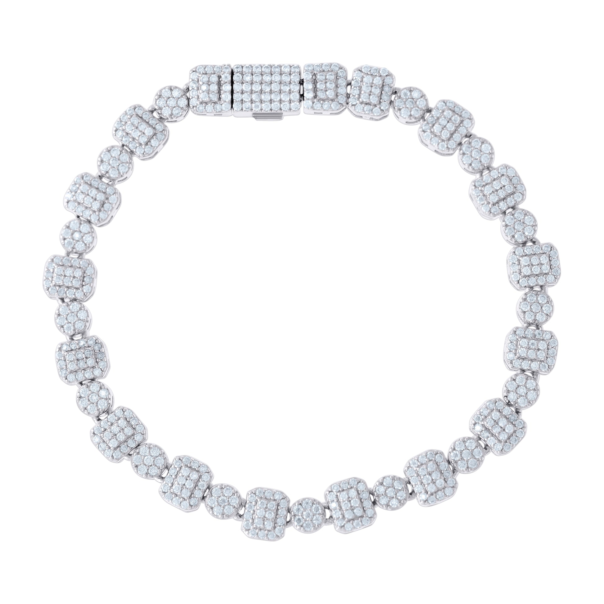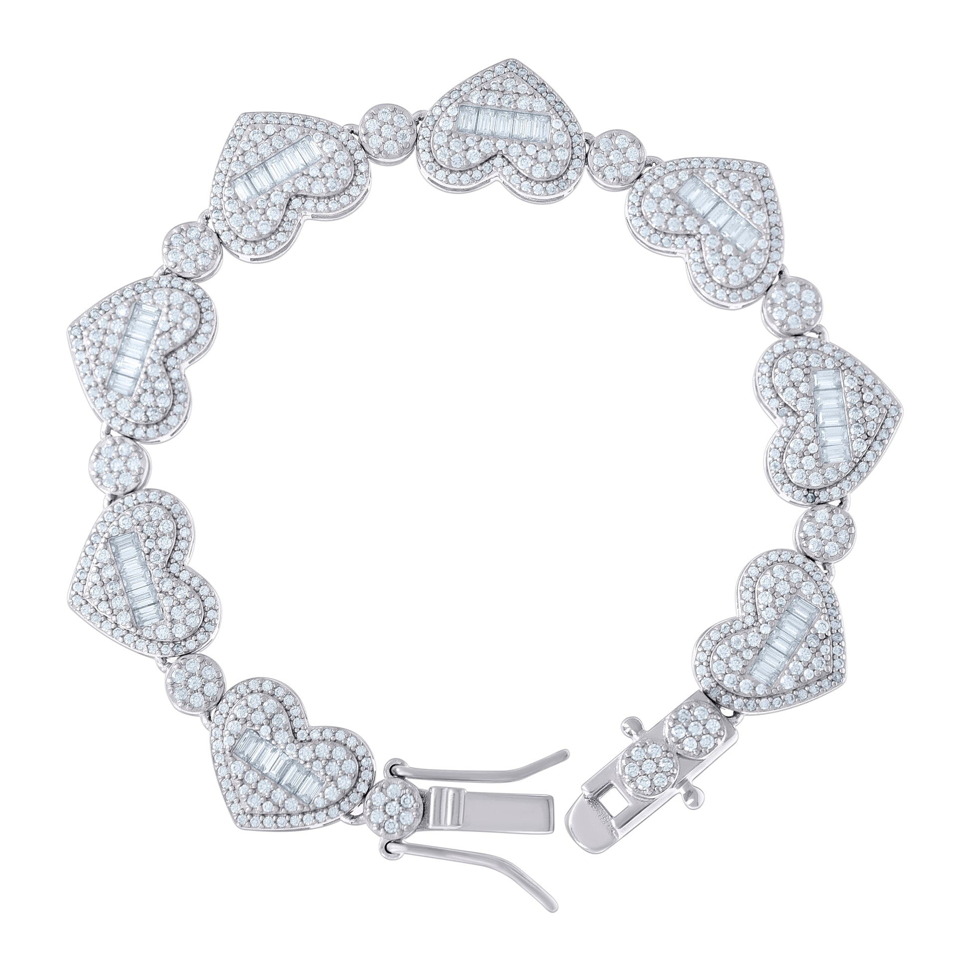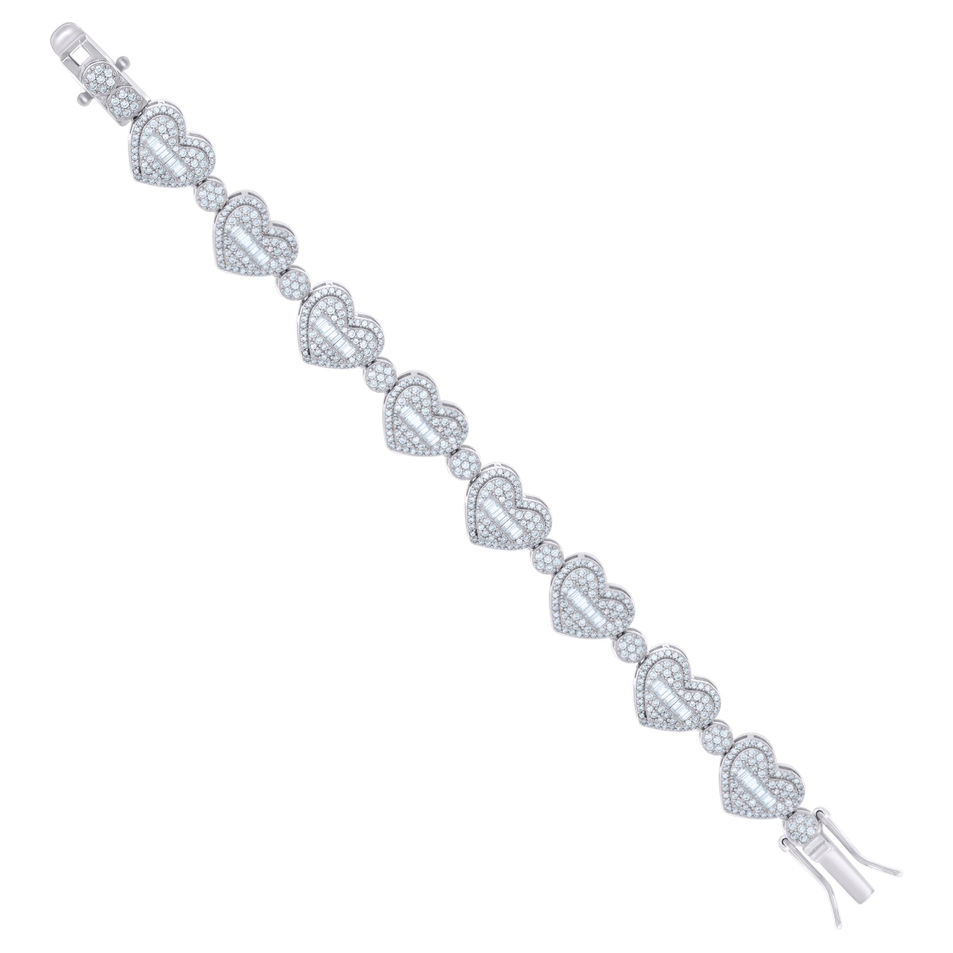 925 Sterling Silver 3.36ct Round, 2.38ct Baguette Moissanite Heart Link Necklace 12.1mm