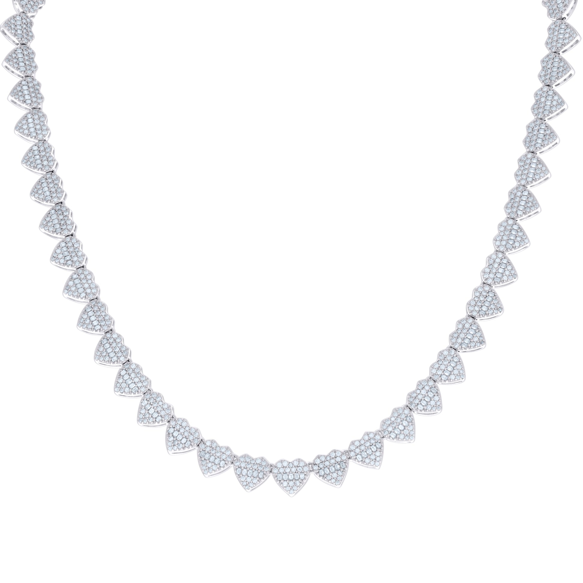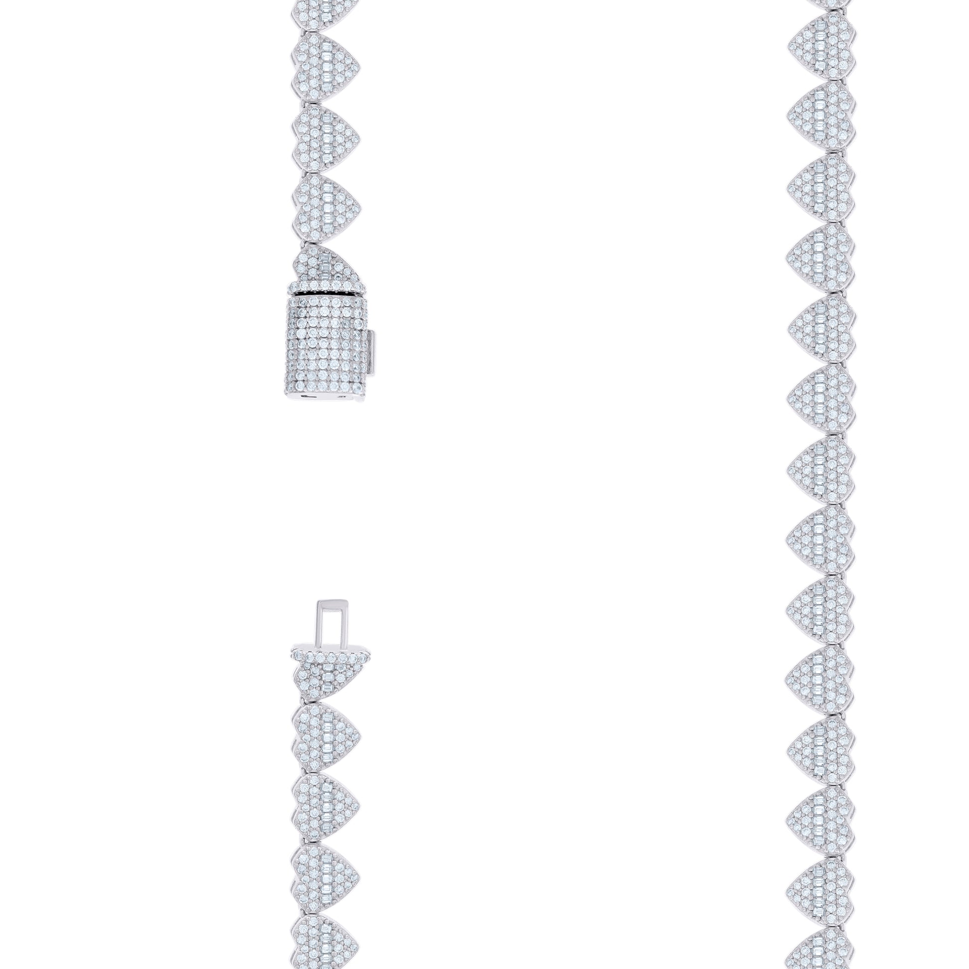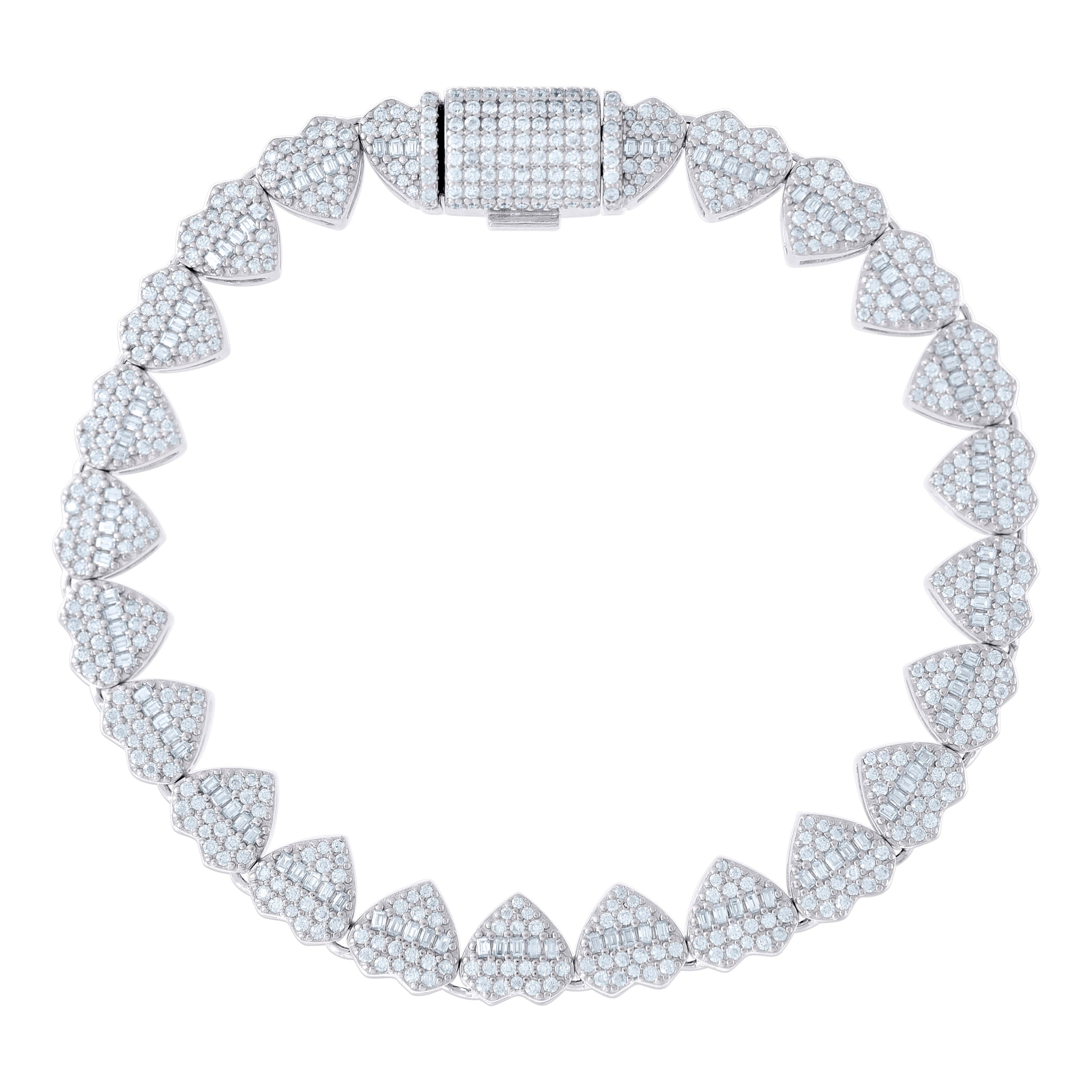 925 Sterling Silver 2.60ct Round, 1.91ct Baguette Moissanite Heart Link Necklace