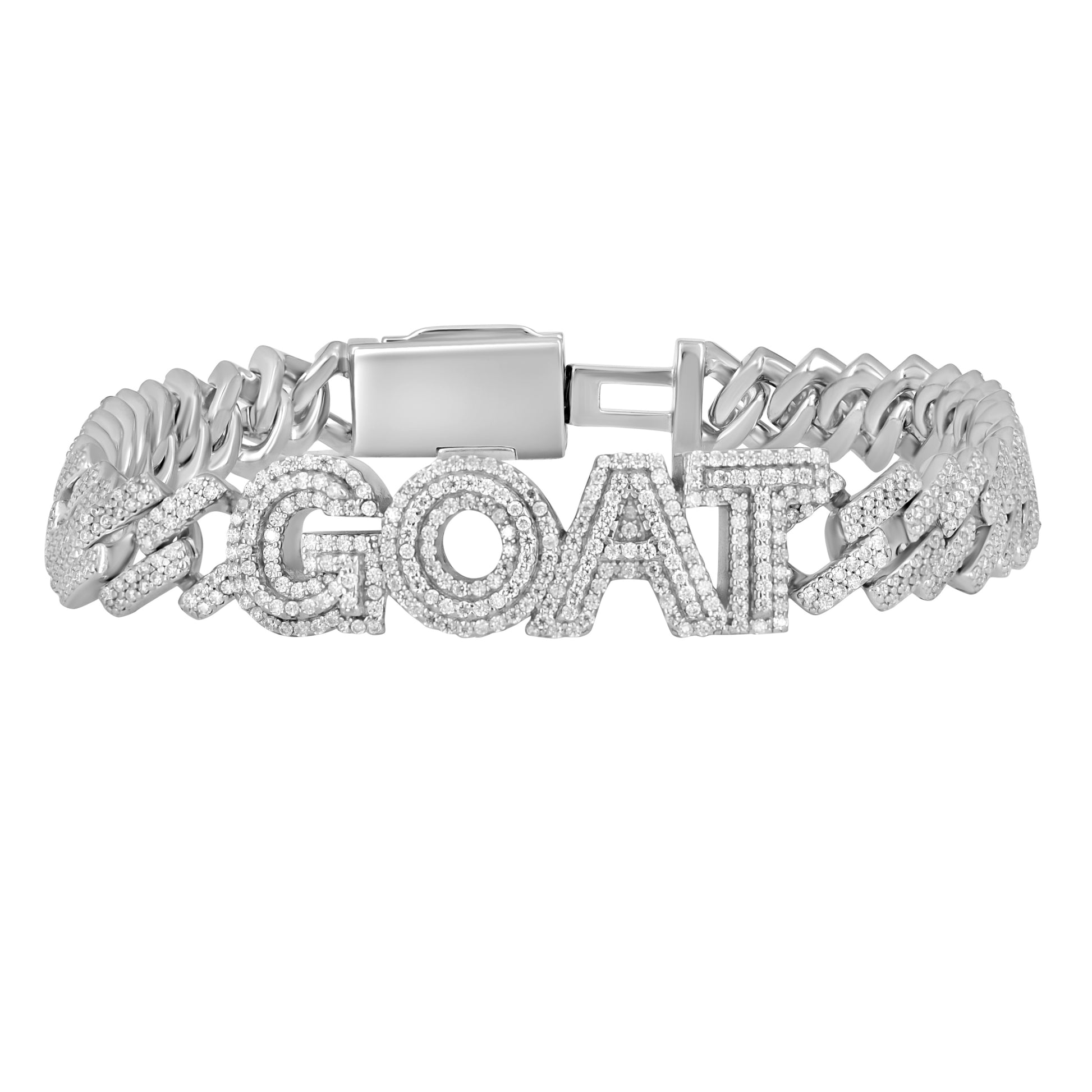 925 Sterling Silver Mens Moissanite GOAT Cuban Chain Bracelet
