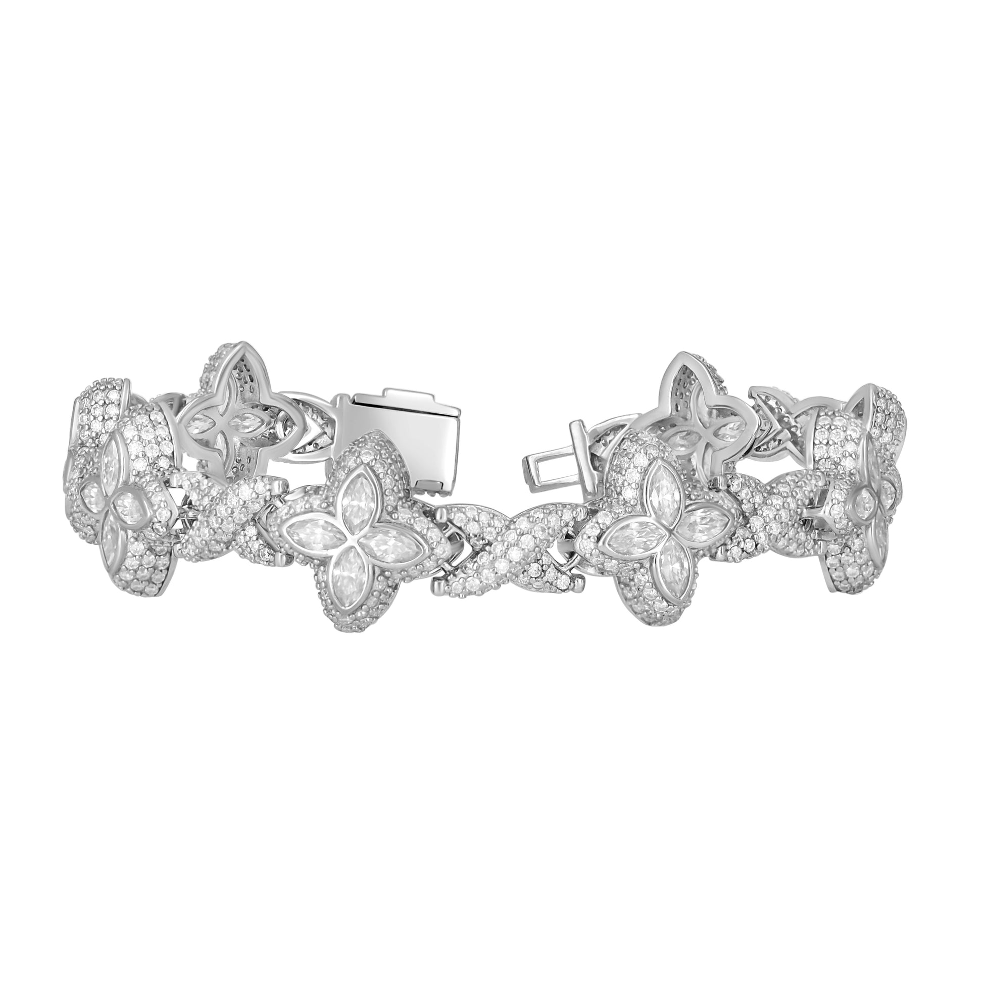 925 Sterling Silver Womens Marquise Round Moissanite Infinity Clover Good Luck Charm Bracelet 16mm
