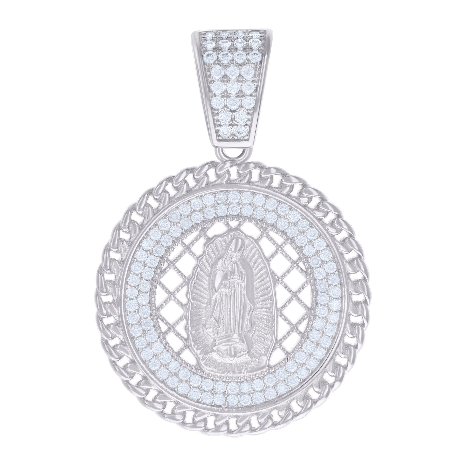 925 Sterling Silver Mens 0.84ct Moissanite Cuban Border Guadalupe/Mother Marry Religious Charm Pendant