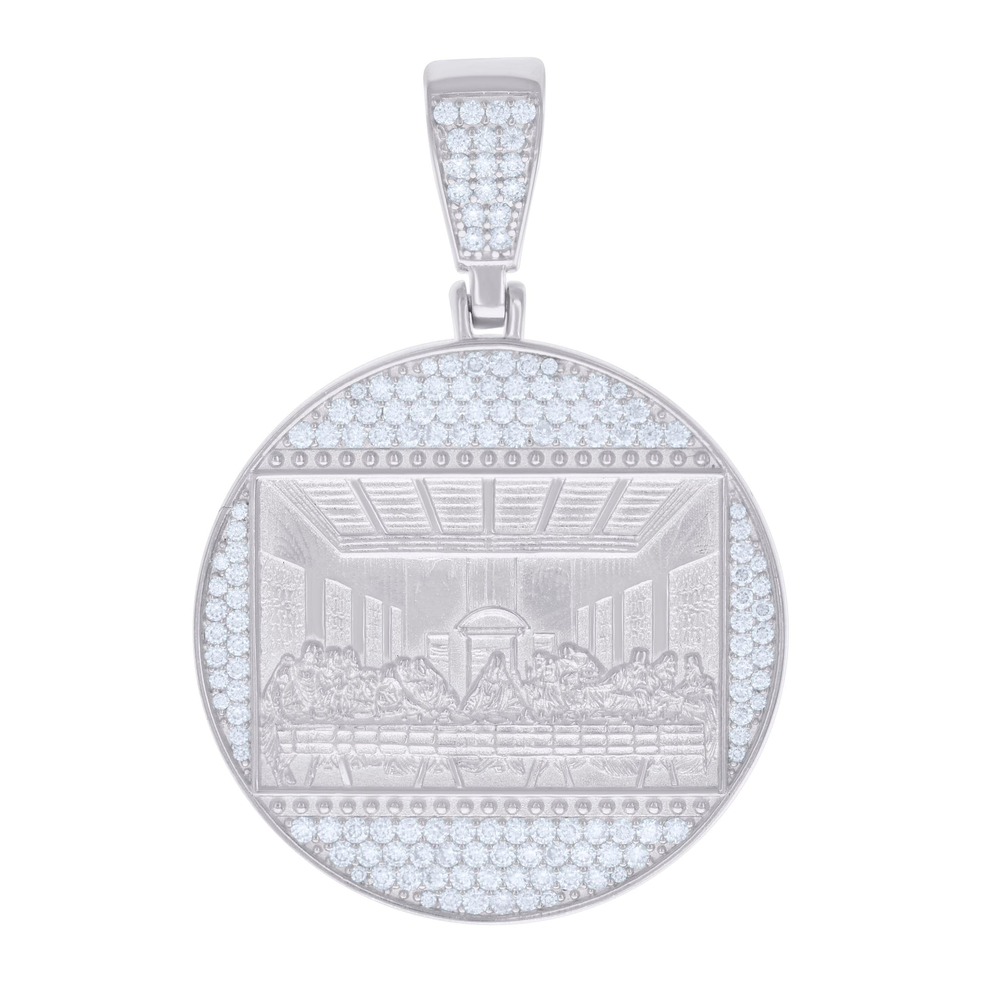 925 Sterling Silver Mens 2.24ct Moissanite Last Supper Religious Charm Pendant