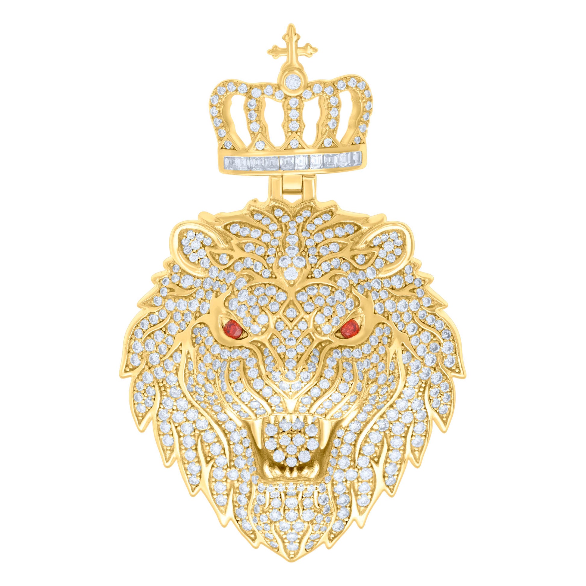 925 Sterling Silver Yellow-tone Mens 4.48ct, 0.42ct Red White Baguette Round Moissanite Leo/Lion Head Pendant