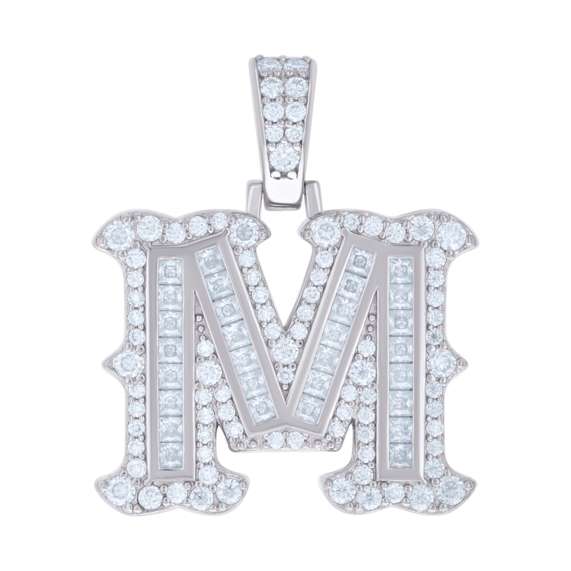 925 Sterling Silver Unisex Baguette Round Moissanite 0.90ct Initial Alphabet M Charm Pendant